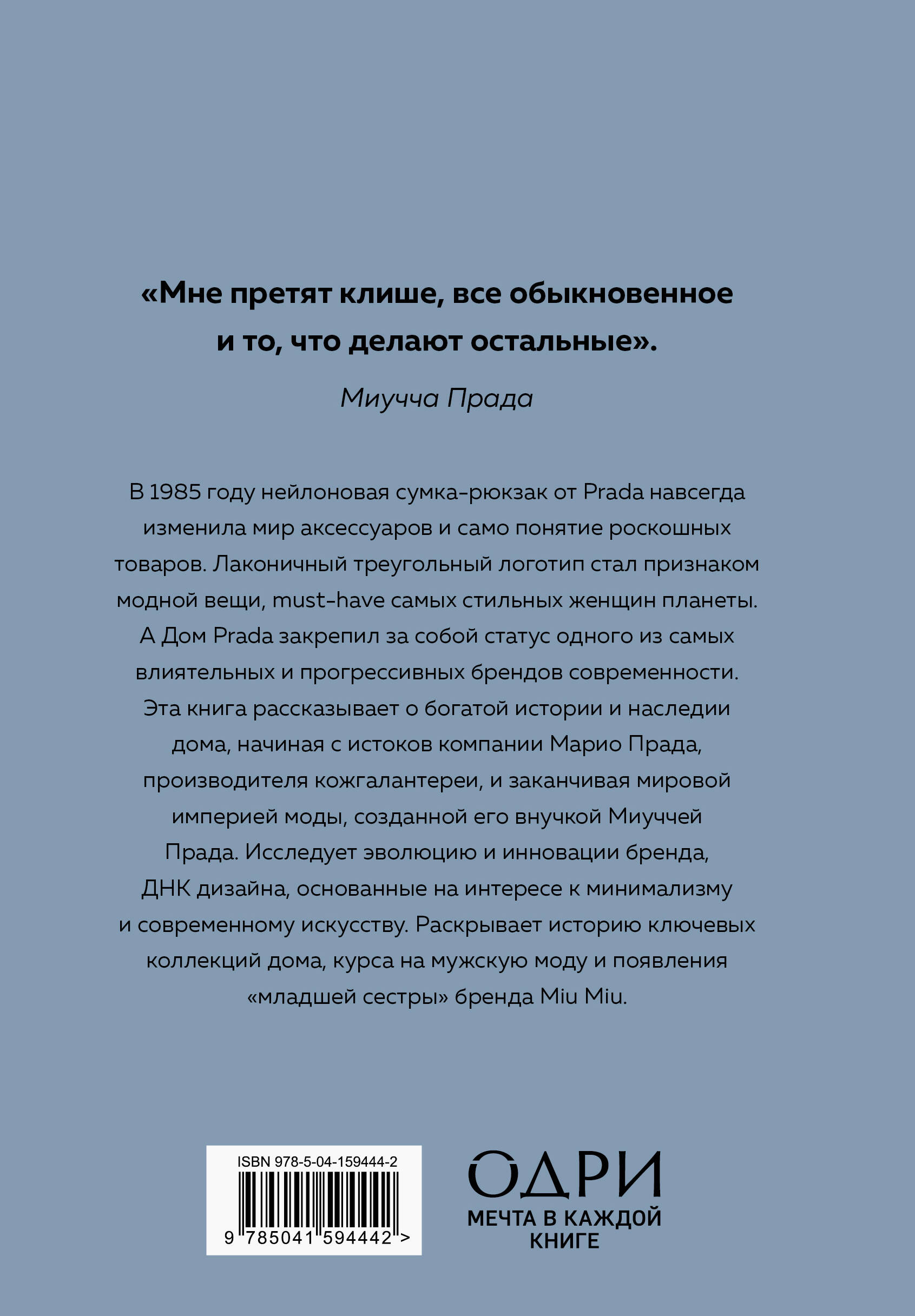 В 1985 году нейлоновая сумка-рюкзак от Prada навсегда изменил мир аксессуаров и само понятие роскошных товаров. Лаконичный треугольный логотип стал признаком модной вещи, must-have самых стильных женщин планеты. А Дом Prada закрепил за собой статус одного из самых влиятельных и прогрессивных брендов современности. Эта книга рассказывает о богатой истории и наследии Дома, начиная с истоков компании как производителя кожгалантереи Марио Прада и заканчивая мировой империей моды, созданной его внучкой Миуччей Прада. Исследует эволюцию и инновации бренда, ДНК дизайна, основанный на интересе к минимализму и современному искусству. Раскрывает историю ключевых коллекций Дома, курса на мужскую моду и появления «младшей сестры» бренда Miu Miu. Более 100 ярких иллюстраций помогут совершить путешествие во времени и стать свидетелями уникального мастерства, рождения модных инноваций и поразительных трансформаций Дома Prada.| Издательство | ООО "Издательство "Эксмо" |