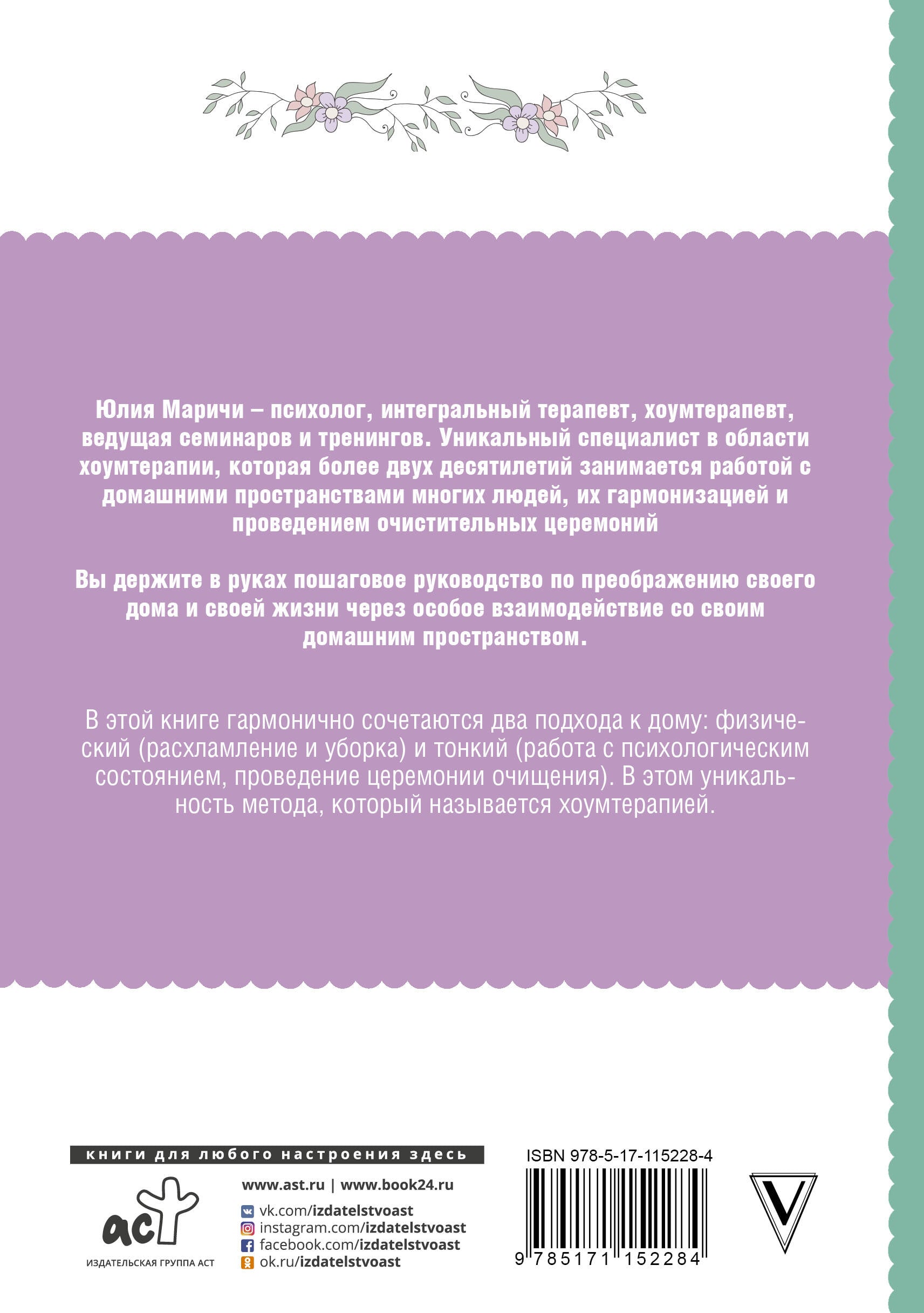 Юлия Маричи - психолог, интегральный терапевт, хоумтерапевт, ведущая семинаров и тренингов. Уникальный специалист в области хоумтерапии, которая более двух десятилетий занимается работой с домашними пространствами многих людей, их гармонизацией и проведением очистительных церемоний.| Издательство | ИЗДАТЕЛЬСТВО "АСТ" |