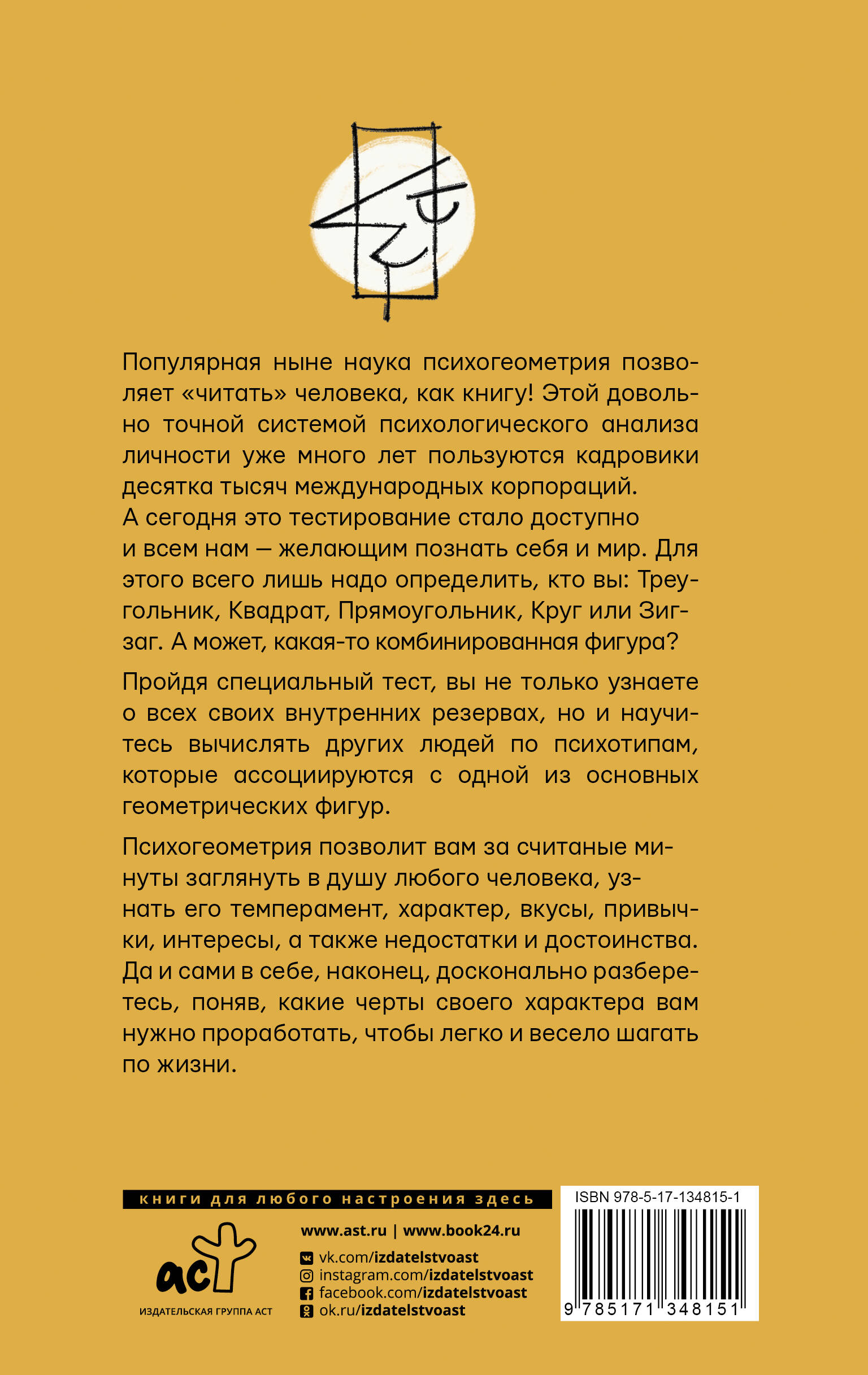 Психогеометрия позволит вам за считаные минуты заглянуть в душу любого человека, узнать его темперамент, характер, вкусы, привычки, интересы, а также недостатки и достоинства. Пройдя специальный тест, вы не только узнаете о всех своих внутренних резервах, но и научитесь вычислять других людей по психотипам, которые ассоциируются с одной из основных геометрических фигур.| Издательство | ИЗДАТЕЛЬСТВО "АСТ" |