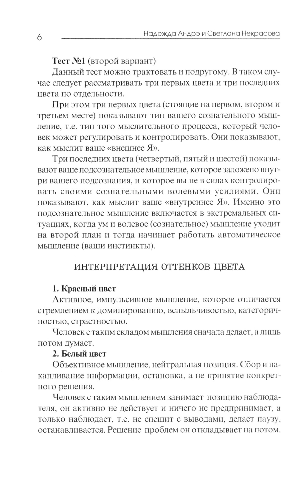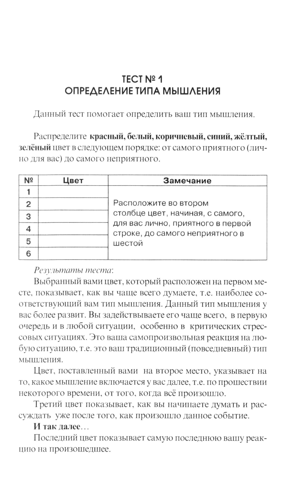 Цвет оказывает огромное влияние и на жизнь человека. Чем больше разного цвета в нашем окружении, тем больше радости и счастья в наших сердцах. Цвет - это подарок самой природы нам, без него наша жизнь была бы скучной, монотонной и неинтересной. .Оздоровительные свойства цвета или лечение цветом применяются уже несколько тысяч лет. Цвет влияет на эмоциональное состояние человека, на настроение и самочувствие. Цветом можно воздействовать на духовный рост и совершенствование человека. Меняя цвета, мы можем не только менять настроение, но и улучшить качество жизни. Каждый цвет имеет свое специфическое воздействие: либо стимулирующее, либо подавляющее. Цвет посылает простые и сложные сигналы, а мы на них интуитивно реагируем. Цвет может привлекать и отталкивать, успокаивать и стимулировать, соблазнять и возбуждать. .Реакция человека на воздействие цвета очень сильно зависит от физического и психического состояния человека. Это позволяет использовать связанные с применением цвета методики для диагностики психологического состояния человека.| Издательство | Профит Стайл |
