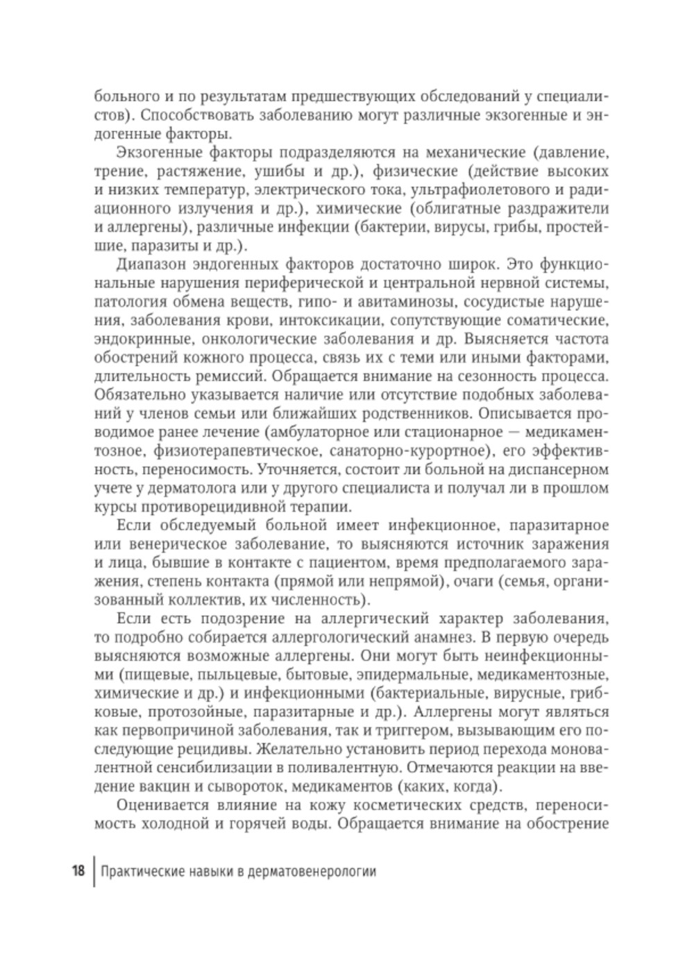 Справочник посвящен описанию практических навыков, которыми должен владеть дерматовенеролог в повседневной клинической практике. Эти навыки необходимы при обследовании больного в процессе его лечения и диспансерного наблюдения. Издание дополнено данными, опубликованными в периодических изданиях в последние годы и полученными авторами при проведении научных исследований. Представлены основы дерматологической пропедевтики, детально описаны диагностические симптомы и методы обследования, использование которых уже при первичном осмотре пациента помогает поставить правильный диагноз. Приведены примеры дифференциальной диагностики дерматозов, позволяющие выбрать целенаправленный путь диагностического поиска. Особый акцент сделан на рациональном подходе к выбору наружных лекарственных средств, наиболее часто применяемых дерматологами с учетом особенностей течения заболевания и необходимости их целевого использования в клинической практике. Предназначен дерматологам, широкому кругу врачей практического здравоохранения, ординаторам, а также студентам медицинских вузов.| Издательство | ГЭОТАР-Медиа |