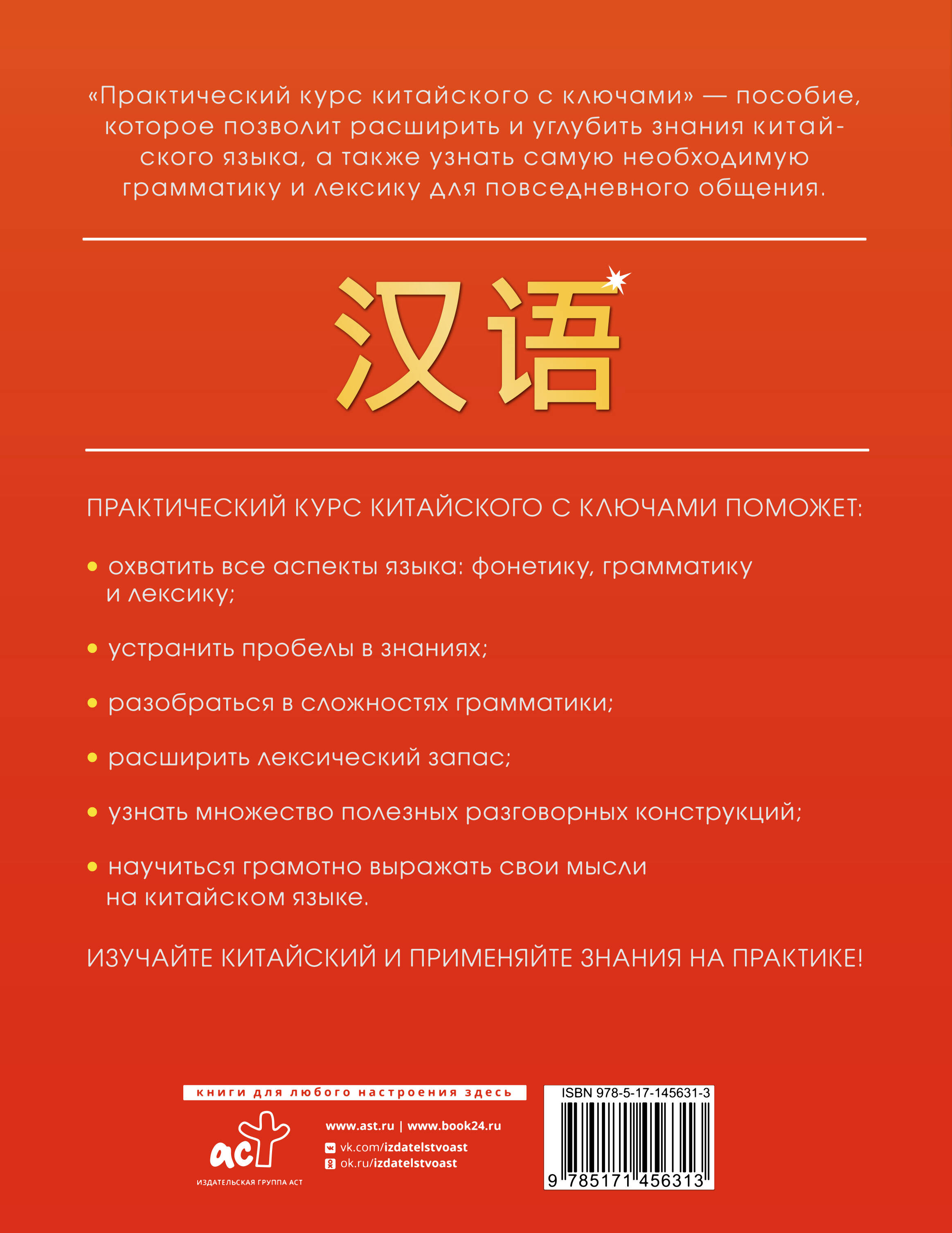 «Практический курс китайского с ключами» поможет: - охватить все аспекты языка: фонетику, грамматику и лексику; - устранить пробелы в знаниях; - разобраться в сложностях грамматики; - расширить лексический запас; - узнать множество полезных разговорных конструкций; - научиться грамотно выражать свои мысли на китайском языке.| Издательство | АСТ |