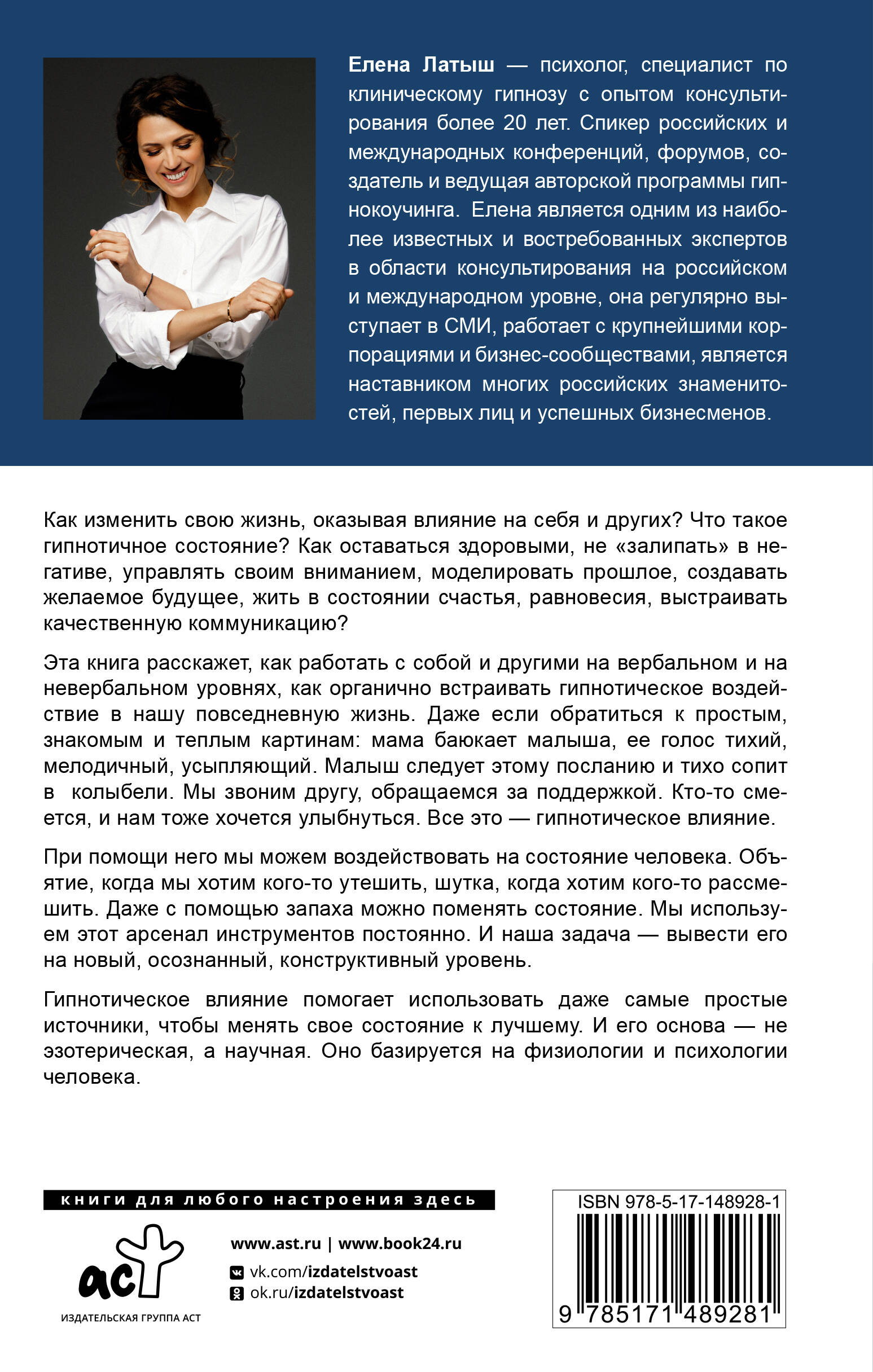 Как изменить жизнь при помощи гипноза? На этот вопрос ответит психолог-гипнотерапевт Елена Латыш. Вы прочтете истории тех, кто благодаря гипнозу добился успеха, победил страх, полюбил себя. Описанные техники позволят поднять самооценку, расслабиться, избавиться от боли, а также отпустить прошлое и начать новую жизнь.| Издательство | ИЗДАТЕЛЬСТВО "АСТ" |