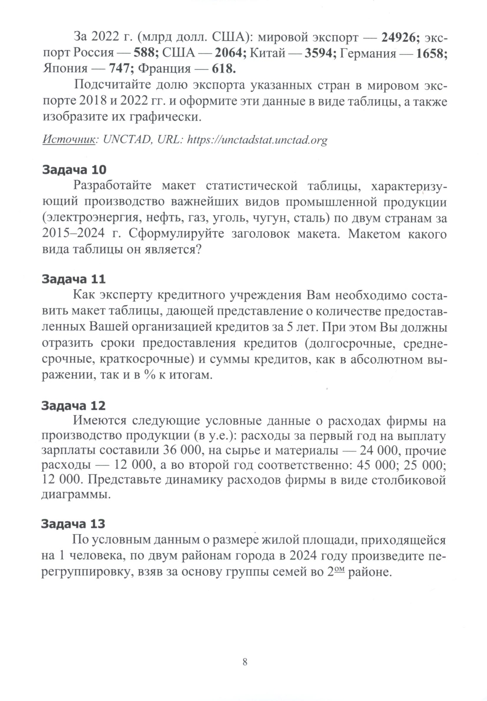 Пособие предназначено для работы на семинарских занятиях по группе статистических дисциплин, а также для самостоятельной работы студентов. Задачи и задания базируются на официальных статистических материалах ООН, Статистического комитета СНГ, ОЭСР и Росстата, а также на условных данных, способствующих раскрытию содержания соответствующих разделов пособия. Настоящее пособие дополнено новыми формулами (с пояснениями), используемыми для решения практических задач, а также приложением со статистическими материалами, включающими, в том числе, блок сводных счетов СНС, а также основные формы статистической отчётности. Для студентов МГИМО МИД России, изучающих курсы «Теория статистики», «Основы статистики», «Социально-экономическая статистика», «Экономическая статистика», «Статистика предпринимательства», «Бизнес-статистика», «Наука о данных».| Издательство | МГИМО-Университет |