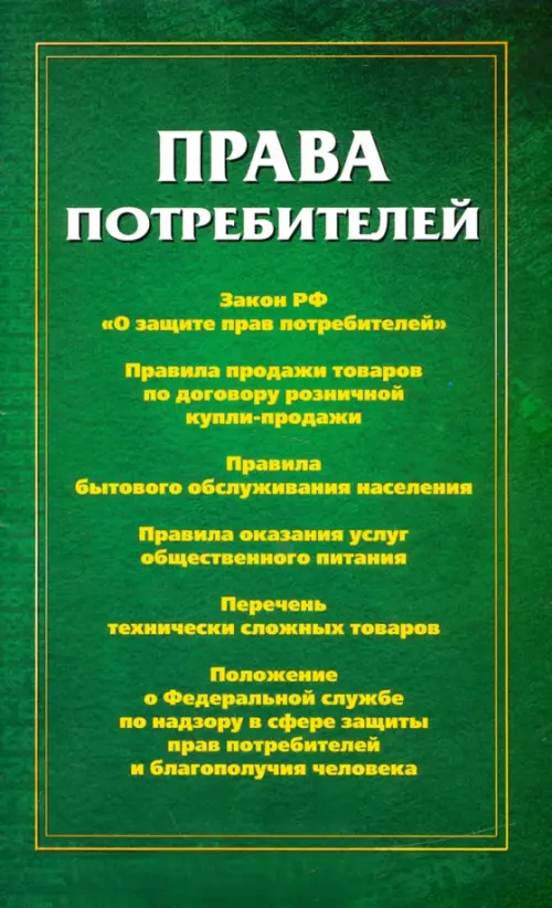 Настоящее издание содержит текст Закона РФ «О защите прав потребителей», Правила продажи товаров по договору розничной купли-продажи, Правила бытового обслуживания населения, Правила оказания услуг общественного питания, Перечень технически сложных товаров и Положение о Федеральной службе по надзору в сфере защиты прав потребителей и благополучия человека.
