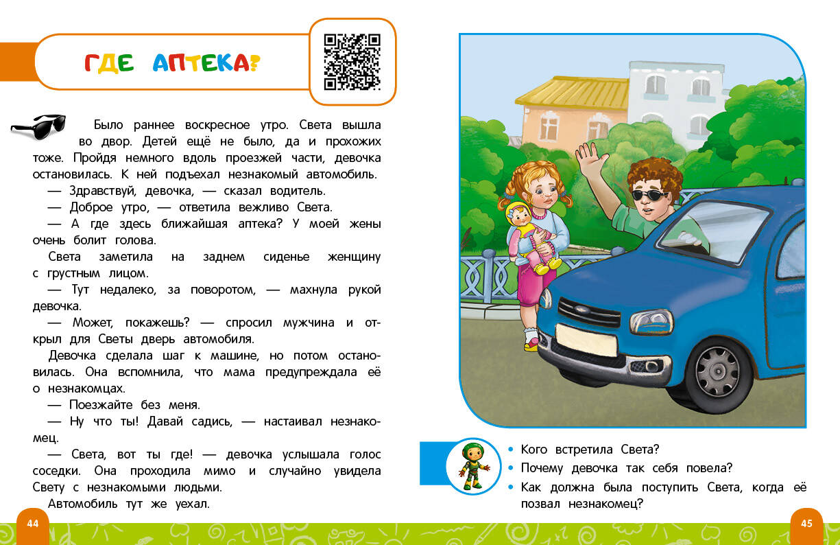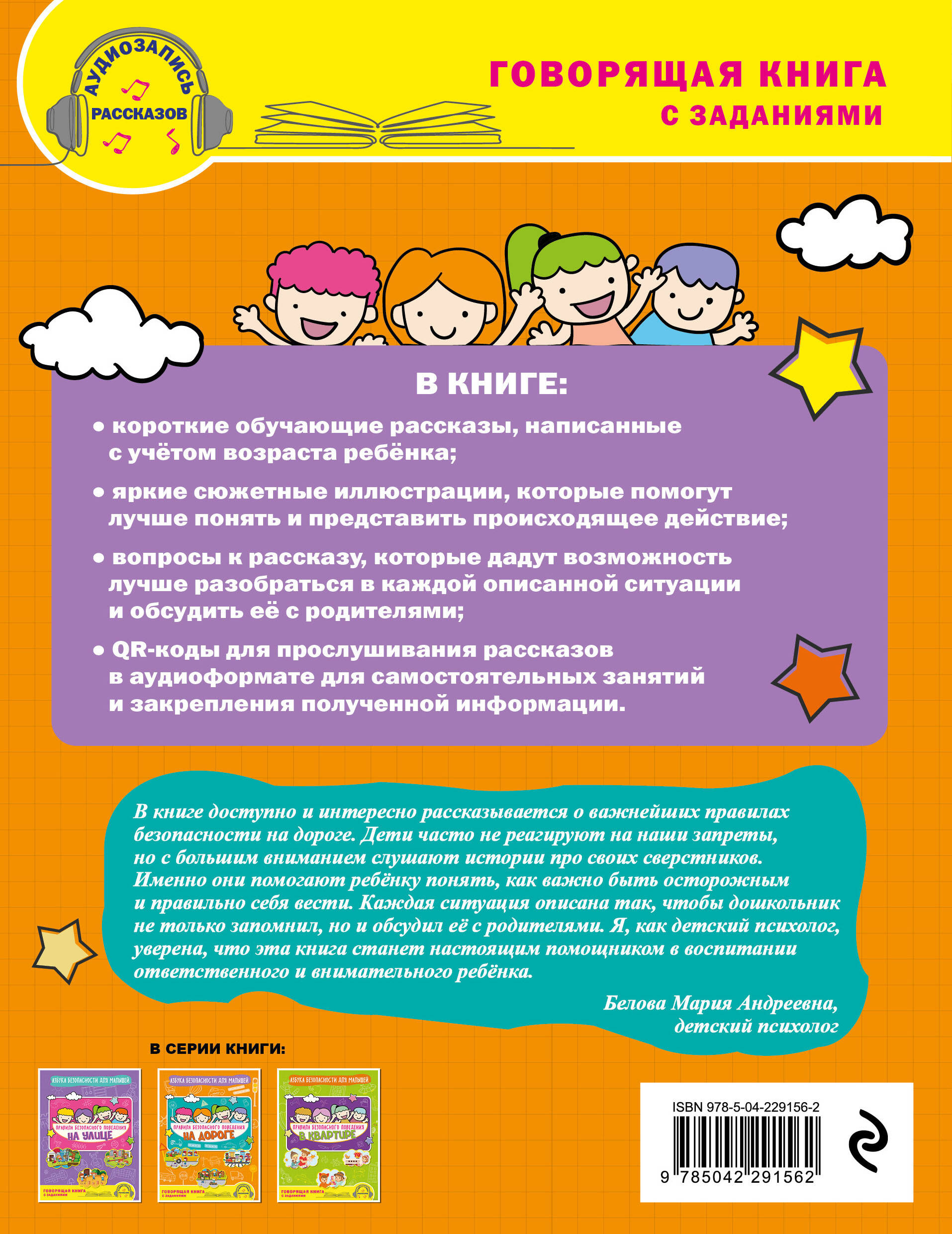 Научить детей правилам поведения и основам безопасности - важная задача для любого родителя. Книга от издательства «Эксмо», сделанная в формате развивашки, станет незаменимым помощником для мальчиков и девочек, превращая обучение в увлекательное приключение. В ней простым и доступным языком рассказываются истории, которые помогают детям понять, как правильно вести себя на дороге. В пособии разбираются темы: на остановке, в транспорте, на вокзале, правила пешехода, чужие люди и др. Вместо скучных запретов ребенку предлагаются интересные истории, которые легко запоминаются и обсуждаются в кругу семьи. Около каждого рассказа имеется QR-код, чтобы ребенок смог прослушать текст самостоятельно. Развивающее пособие для детей 4-5-6 лет станет отличным подарком любому ребенку к Новому году, дню рождения и другим праздникам, а также верным помощником для родителей, которые хотят вырастить воспитанных и уверенных в себе детей. Если ребенка заинтересует такой способ обучения, рекомендуем обратить внимание на другие книги серии: «Правила безопасного поведения в квартире. Говорящая книга с заданиями», «Правила безопасности на улице. Говорящая книга с заданиями». В книге: • Короткие обучающие рассказы, написанные с учетом возраста ребенка. • Яркие сюжетные иллюстрации, которые помогут лучше понять и представить происходящее действие. • Вопросы к рассказу, которые дадут возможность лучше разобраться в каждой описанной ситуации и обсудить ее с родителями. • QR-коды для прослушивания рассказов в аудиоформате для самостоятельных занятий и закрепления полученной информации. Кроме того, чтение книги сделает жизнь ребенка безопаснее, она поможет в: • развитии речи - отвечая на вопросы, ребенок научится формулировать мысли, строить фразы и общаться уверенно; • тренировке мышления и воображения - обсуждение героев и событий поможет ребенку научиться рассуждать, мыслить и понимать смысл прочитанного; • развитии памяти и внимания - слушая и пересказывая, ребенок тренирует концентрацию и логическое мышление; • эмоциональном развитии - обсуждая поступки персонажей, дети начинают лучше понимать чувства - свои и чужие.| Издательство | ООО "Издательство "Эксмо" |