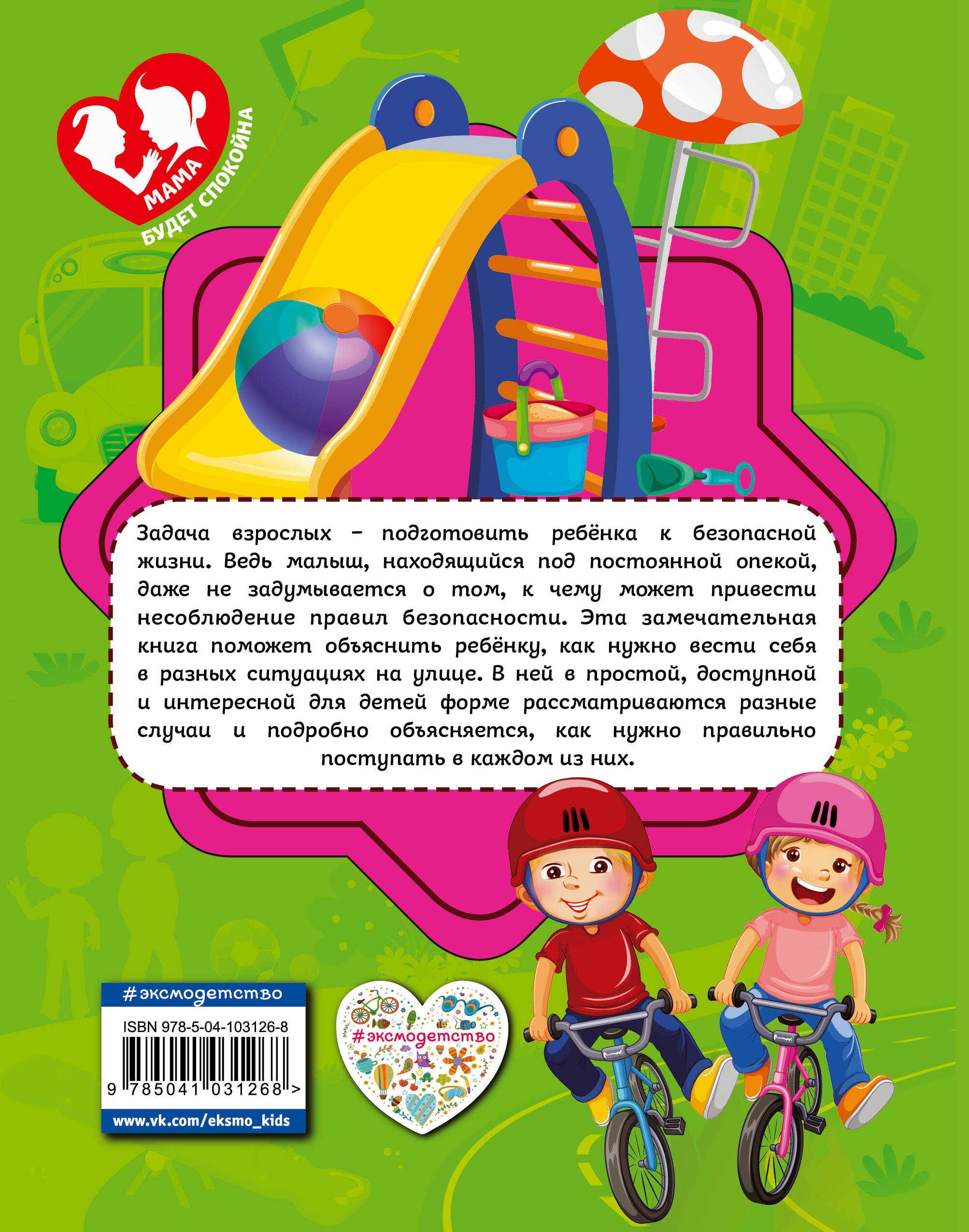 Книга для заботливых родителей, которые хотят научить детей безопасному поведению на улице! Важнейшая задача для родителей - научить ребёнка безопасному поведению на улице. В нашей книге в простой, доступной и интересной для малыша форме рассматриваются основные возможные случаи, которые могут произойти с ребёнком на улице. Послушав интересную историю, обсудив её с родителями, малышу гораздо проще сделать выводы и запомнить нехитрые правила безопасного поведения, чем тогда, когда ему втолковывают их в форме «это нельзя» и «так не делают». Занимаясь с малышом по книге, родители добьются успеха в обучении ребёнка правилам поведения. Ведь если ребёнок умеет вести себя безопасно - мама всегда будет спокойна!| Издательство | Эксмо |