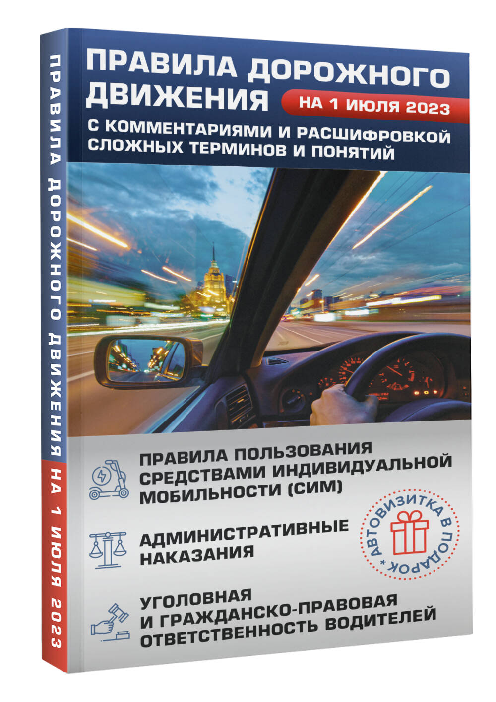 Аннотация: Правила дорожного движения на 1 июля 2023 с комментариями и расшифровкой сложных терминов и понятий. Автовизитка в подарок