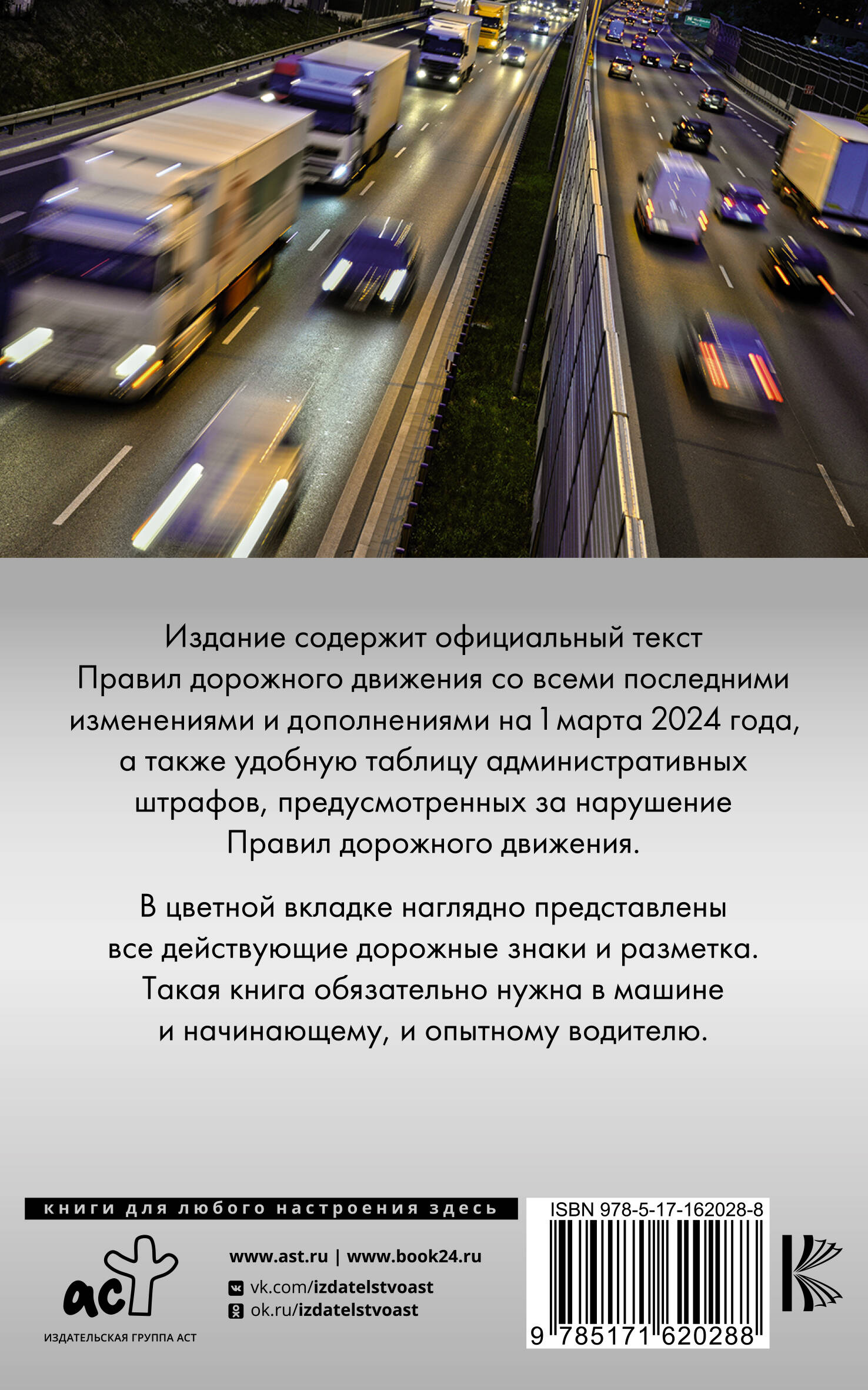 Издание содержит официальный текст Правил дорожного движения со всеми последними изменениями и дополнениями на 1 марта 2024 года, включая новый перечень неисправностей и условий, при которых запрещается эксплуатация транспортных средств, а также удобную таблицу административных штрафов, предусмотренных за нарушение Правил дорожного движения. В цветной вкладке наглядно представлены все действующие дорожные знаки и разметка. Такая книга обязательно нужна в машине и начинающему, и опытному водителю. Издание учитывает все изменения, опубликованные в официальных источниках на момент подписания издания в печать.| Издательство | Издательство "АСТ" |