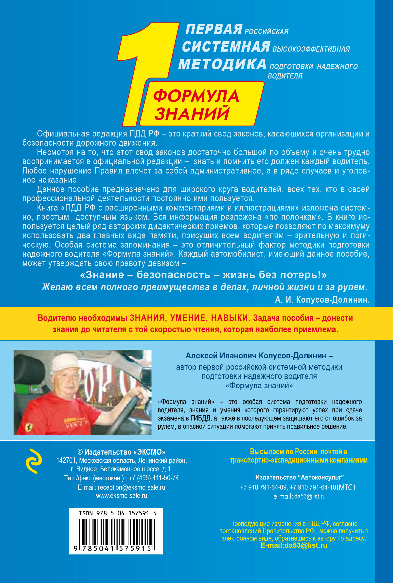 Книга содержит текст ПДД с авторскими комментариями. Ее особенность - в особой методике запоминания, благодаря которой текст не нужно повторять снова и снова. Издание содержит самые последние изменения в ПДД. Комментарии и иллюстрации адаптируют материал для широкой публики. Книга ориентирована на учащихся автошкол, начинающих водителей и тех, кто давно за рулем, но решил восполнить пробелы. Автор книги - создатель первой в России системной методики подготовки водителей. Его пособия на рынке уже более двадцати лет и регулярно попадают в перечни рекомендации автошкол.| Издательство | ООО "Издательство "Эксмо" |