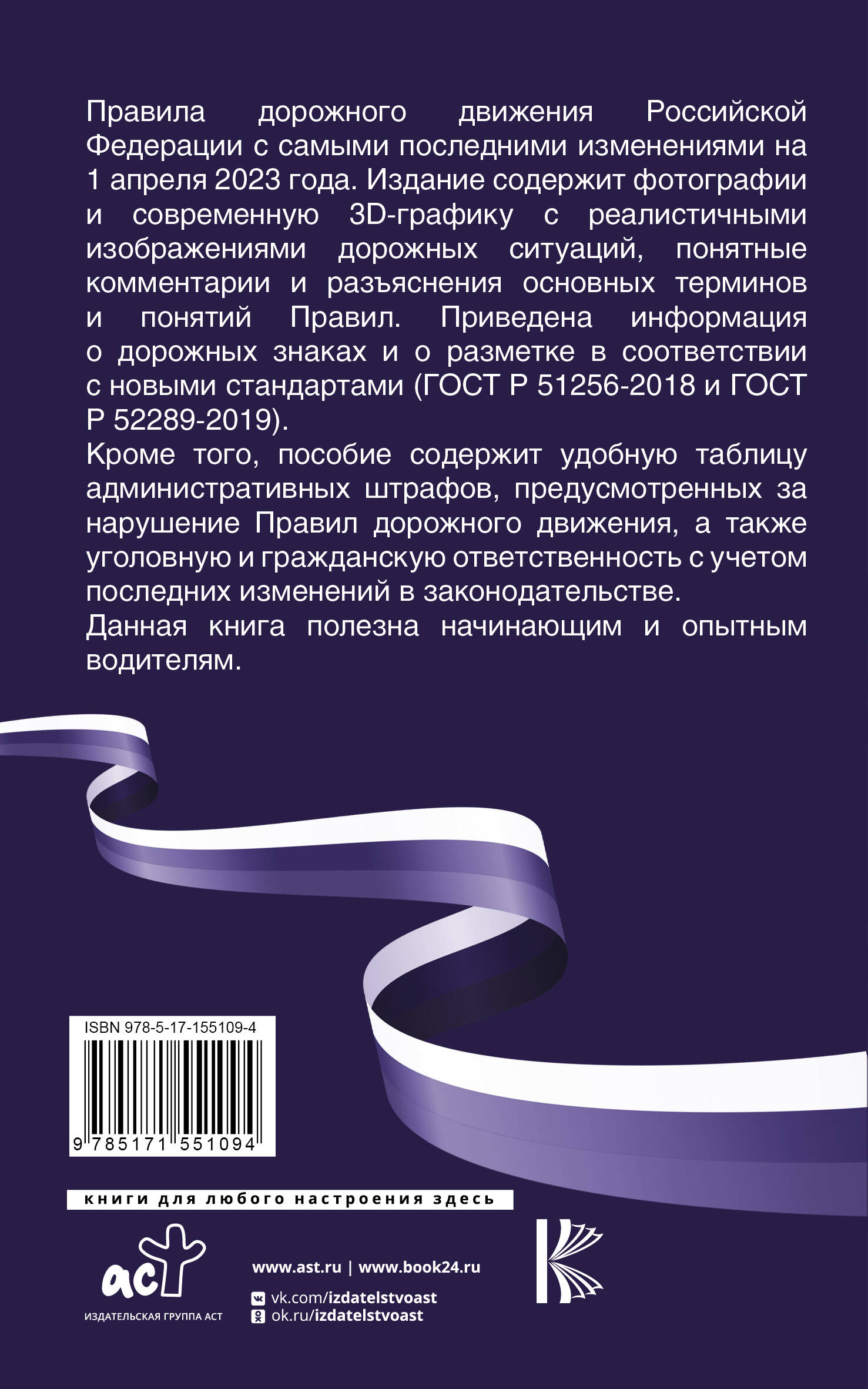 Правила дорожного движения Российской Федерации с самыми последними изменениями на 1 апреля 2023 года с учетом всех изменений и дополнений, включая правила пользования средствами индивидуальной мобильности (электросамокатами, электроскейтбордами, гироскутерами, сигвеями, моноколесами и иными аналогичными средствами). Издание содержит фотографии и современную 3D-графику с реалистичными изображениями дорожных ситуаций, понятные комментарии и разъяснения основных терминов и понятий Правил. Приведена информация о дорожных знаках и о разметке в соответствии с новыми стандартами (ГОСТ Р 51256-2018 и ГОСТ Р 52289-2019). Кроме того, пособие содержит удобную таблицу административных штрафов, предусмотренных за нарушение Правил дорожного движения, а также уголовную и гражданскую ответственность с учетом последних изменений в законодательстве. Данная книга полезна начинающим и опытным водителям. пдд 2023, для автомобиля в салон, подарок мужчине, подарок на 23 февраля, подарок на 14 февраля, подарок парню, подарок на 14 февраля парню, подарок папе, подарок мужчине на др, подарок мужчине на 23 февраля, подарок мужу, подарок на 23 февраля коллегам, подарок на 23 февраля мужу, подарок на 23 феврвля, подарок другу, подарок мужу на др, мужской подарок