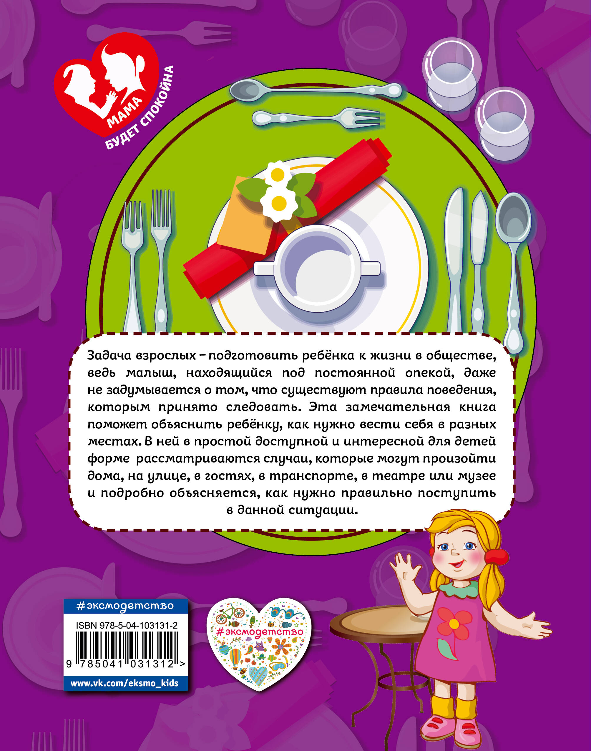 Книга для заботливых родителей, которые хотят научить детей правилам этикета! Важнейшая задача для родителей научить ребенка правильно вести себя в обществе. В нашей книге в простой доступной и интересной для малыша форме рассматриваются основные возможные случаи, которые могут произойти дома, на улице, в гостях, в транспорте и т. д. Послушав интересную историю, обсудив ее с родителями, ребенку гораздо проще сделать выводы и запомнить нехитрые правила этикета, чем тогда, когда ему втолковывают их в форме «это нельзя» и «так не делают». Занимаясь с малышом по книге, родители добьются успеха в обучении ребенка правилам поведения. Ведь если ребенок умеет себя вести - мама всегда будет спокойна!| Издательство | Эксмо |