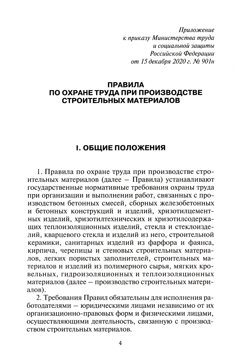 Правила по охране труда при производстве строительных материалов. Утв.приказом Министерства труда и социальной защиты РФ от 15.12.2020г. № 901н