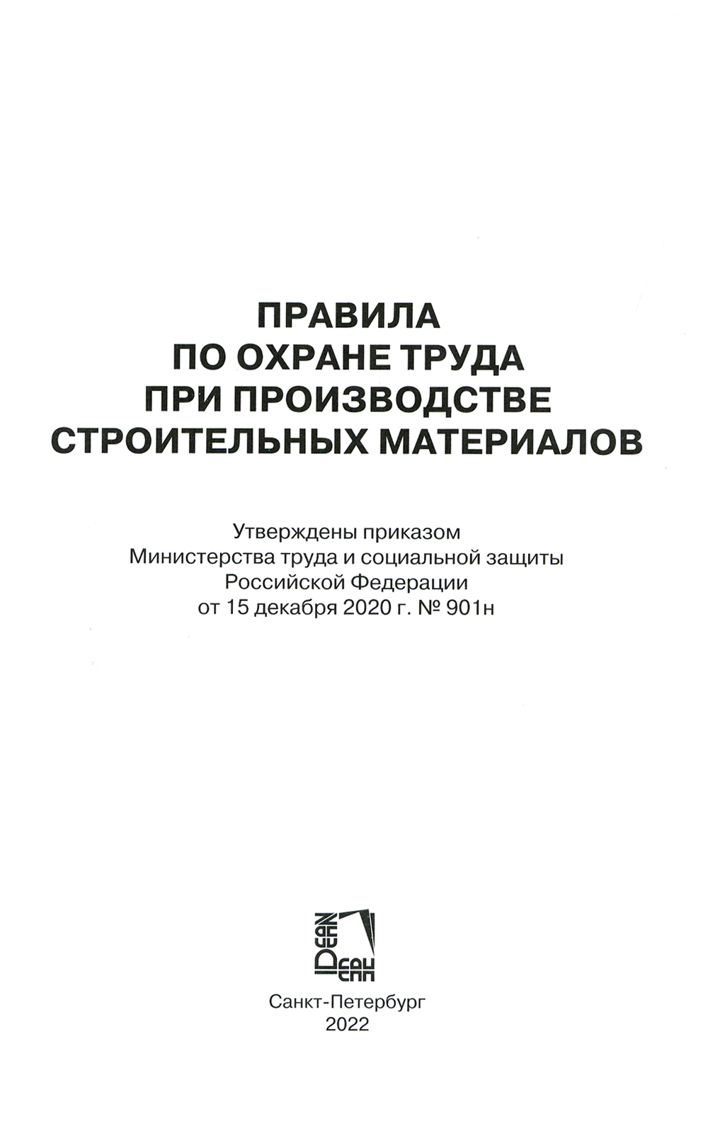 Правила по охране труда при производстве строительных материалов устанавливают государственные нормативные требования охраны труда при организации и выполнении работ, связанных с производством бетонных смесей, сборных железобетонных и бетонных конструкций и изделий, хризотилцементных изделий, хризотилтехнических и хризотилсодержащих теплоизоляционных изделий, стекла и стеклоизделий, кварцевого стекла и изделий из него, строительной керамики, санитарных изделий из фарфора и фаянса, кирпича, черепицы и стеновых строительных материалов, легких пористых заполнителей, строительных материалов и изделий из полимерного сырья, мягких кровельных, гидроизоляционных и теплоизоляционных материалов. Утверждены приказом Министерства труда и социальной защиты Российской Федерации от 15 декабря 2020 г. № 901 н.| Издательство | Деан |