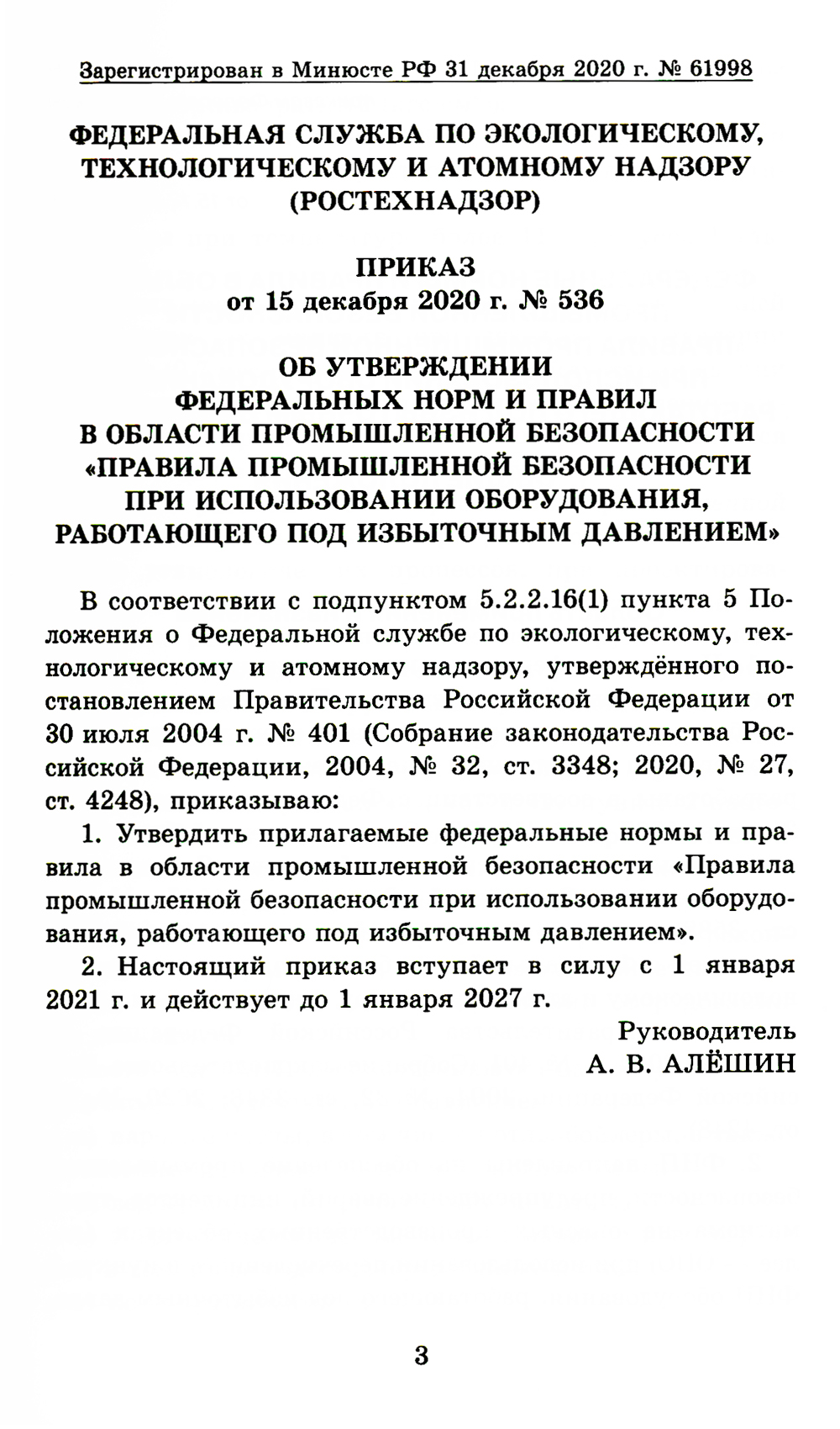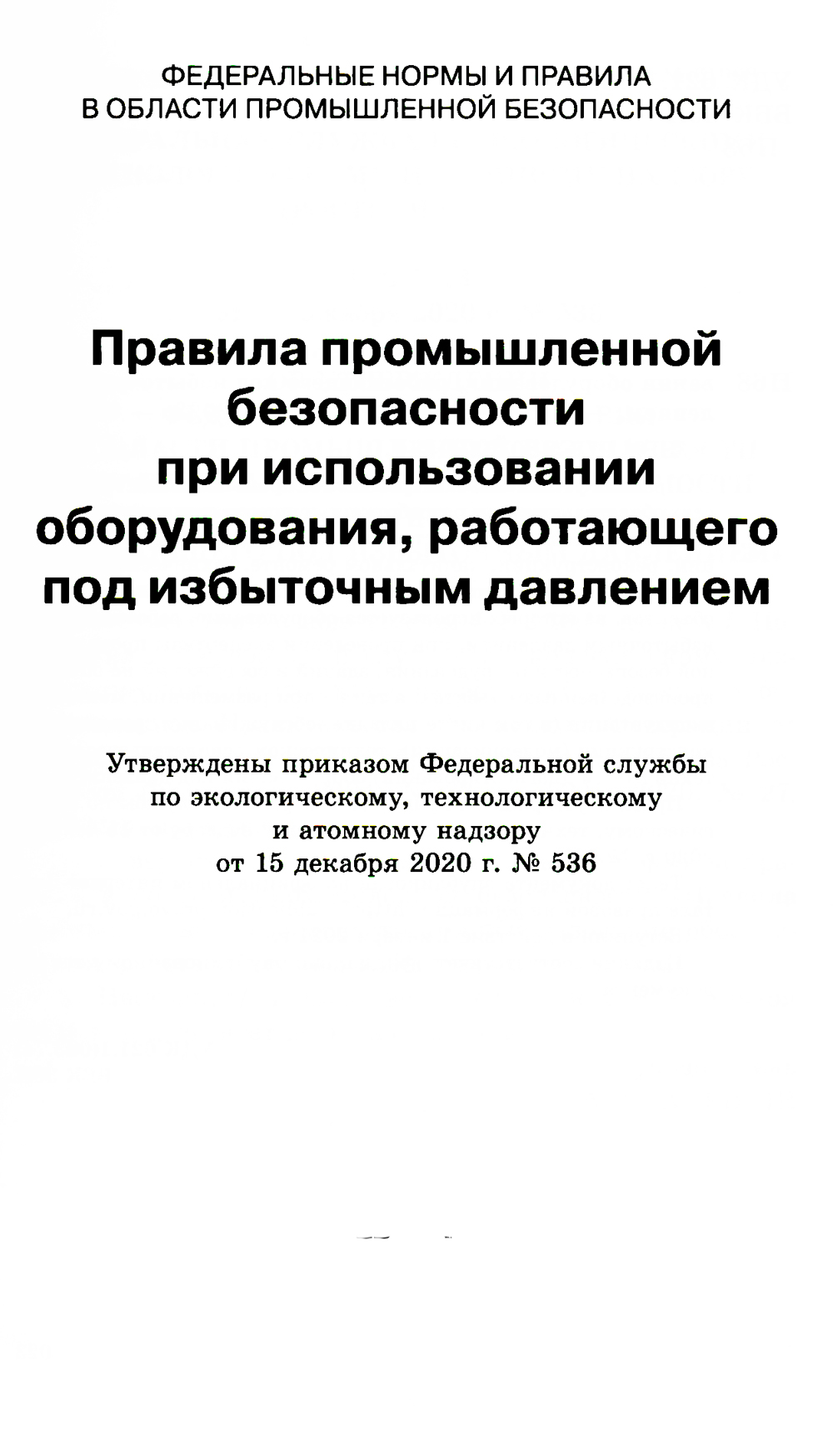 Аннотация: Правила промышленной безопасности при использовании оборудования, работающего под избыточным давлением