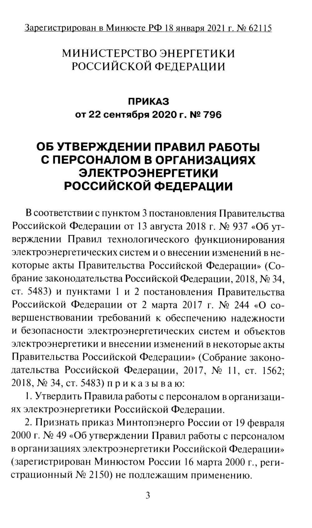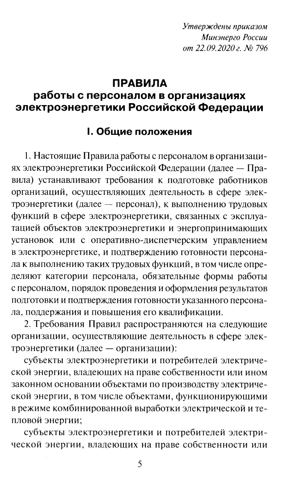 Аннотация: Правила работы с персоналом в организациях электроэнергетики РФ