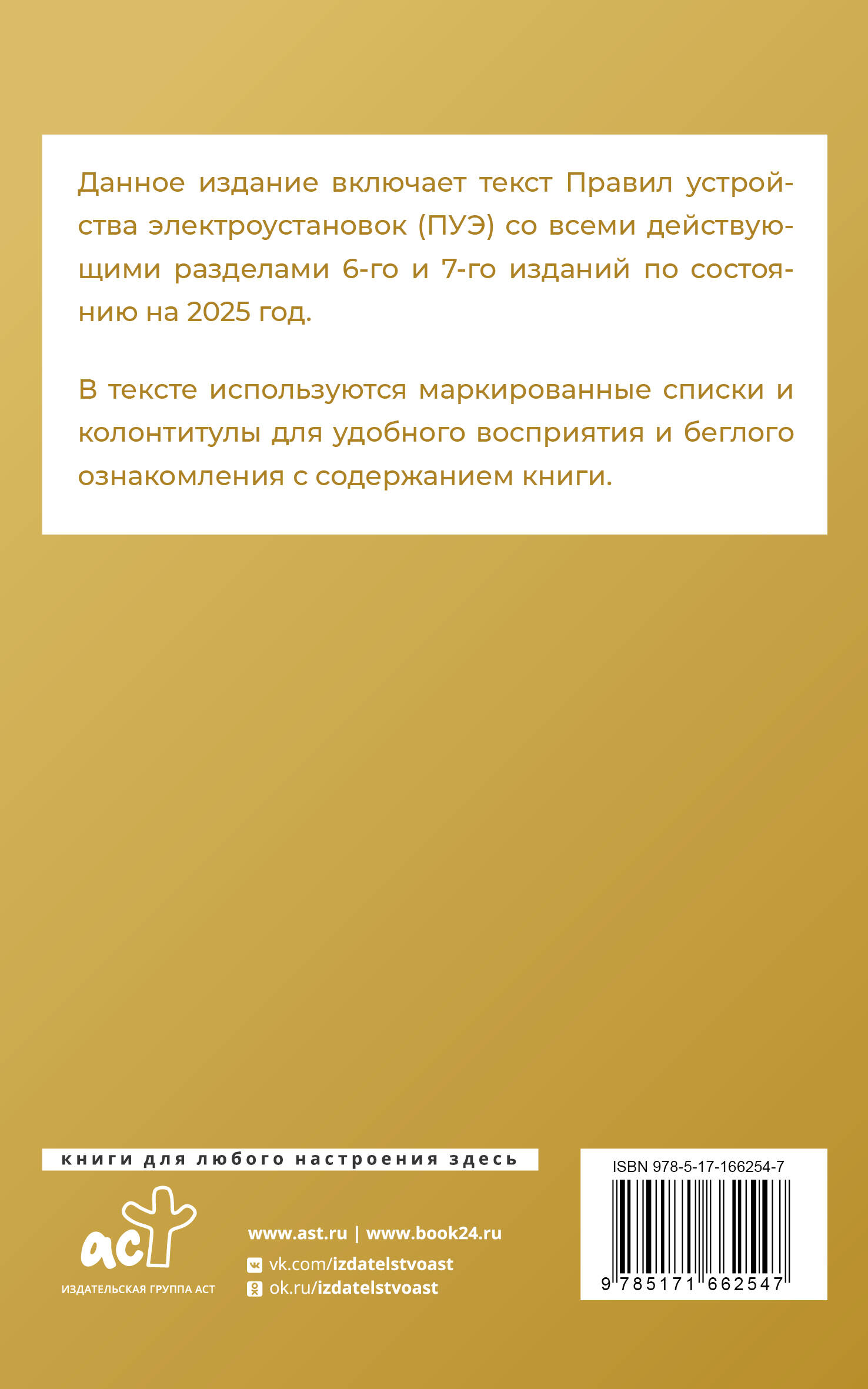 Данное издание включает текст Правил устройства электроустановок (ПУЭ) со всеми действующими разделами 6-го и 7-го изданий на 2025 год В тексте используются маркированные списки и колонтитулы для удобного восприятия и беглого ознакомления с содержанием книги. Издание учитывает все изменения, опубликованные в официальных источниках на момент подписания издания в печать.| Издательство | Издательство "АСТ" |