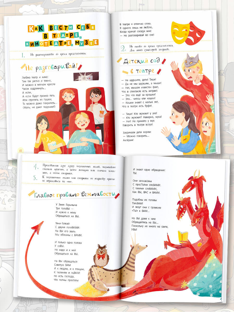 Каждый родитель хочет, чтобы его ребенок был воспитанным и вежливым. А что такое вежливость? Что можно, а что нельзя делать, чтобы окружающие считали тебя настоящей леди или настоящим джентльменом? Это не только не класть ноги на стол или не здороваться с соседями на весь вагон, изо всех сил дергая протянутую руку. Чтобы не упасть в глазах родни, надев очень яркий наряд, но не причесавшись; не промахнуться, даря другу на день рождения то, что нравится только тебе; не мешать зрителям, громким рассказом о нем по телефону; не испортить праздничный вечер, потянувшись за желанным угощением на другом конце стола… Чтобы не краснеть и не бледнеть, и всегда знать, как поступить, надо читать, запоминать и применять на практике правила поведения, так сказать, знать назубок уроки этикета!| Издательство | Издательство "АСТ" |