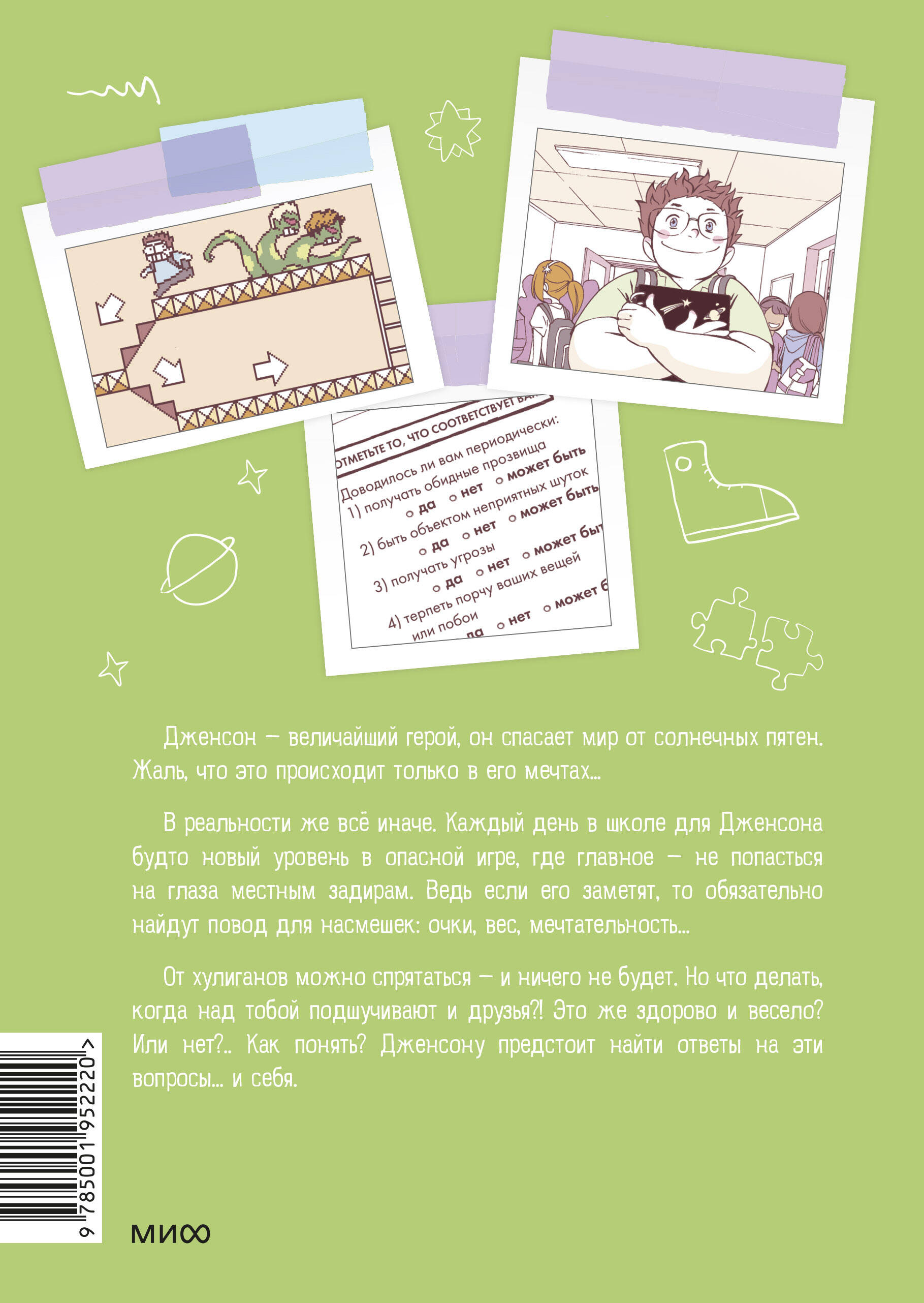 Дженсон - величайший герой, он спасает мир от солнечных пятен. Жаль, что это происходит только в его мечтах. Реальность в средней школе ОЧЕНЬ отличается: каждый день - это будто новый уровень в сложной игре, от проблем с математикой до попыток не попасться на глаза школьным задирам. Правда, от хулиганов можно спрятаться - и ничего не будет. Чего нельзя сказать о математике… Но гораздо сложнее справляться с каждой новой трудностью, когда над тобой подшучивают. ВСЕ. Даже друзья. Но ведь если шутят друзья - это весело? Или нет?