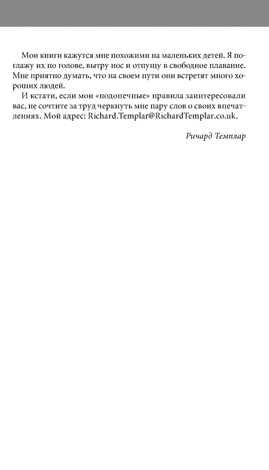О том, как научиться проживать жизнь сполна, думая, но не зацикливаясь на завтрашнем дне. 100 несложных правил, которыми предлагает воспользоваться Ричард Темплар, легко запоминаются и применяются на практике.