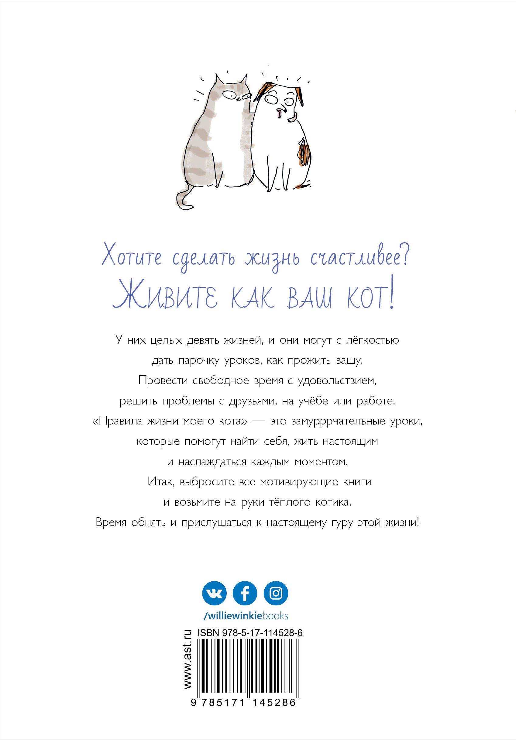 Хотите сделать жизнь счастливее? ЖИВИТЕ КАК ВАШ КОТ! У них целых девять жизней, и они могут с лёгкостью дать парочку уроков, как прожить вашу. Провести свободное время с удовольствием, решить проблемы с друзьями, на учёбе или работе. «Правила жизни моего кота» - это замурррчательные уроки, которые помогут найти себя, жить настоящим и наслаждаться каждым моментом. Итак, выбросите все мотивирующие книги и возьмите на руки тёплого котика. Время обнять и прислушаться к настоящему гуру этой жизни!| Издательство | ИЗДАТЕЛЬСТВО "АСТ" |