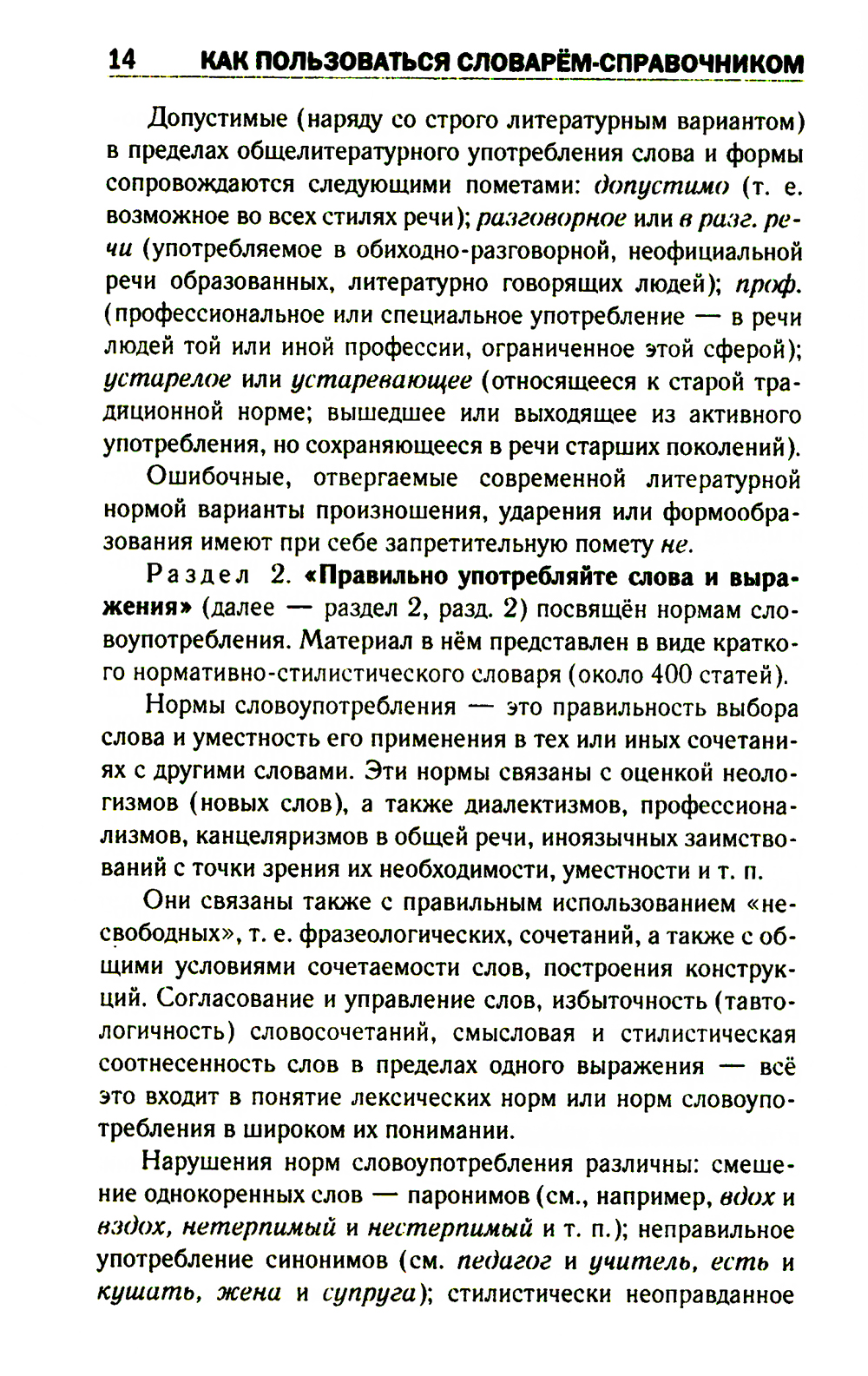 В словаре­справочнике рассматриваются наиболее трудные случаи произношения и ударения, словоупотребления, фразеологии, стилистической окраски слов, управления и согласования, показаны наиболее частые случаи вариантности современной нормы русского языка, описаны типичные ошибки устной и письменной речи.