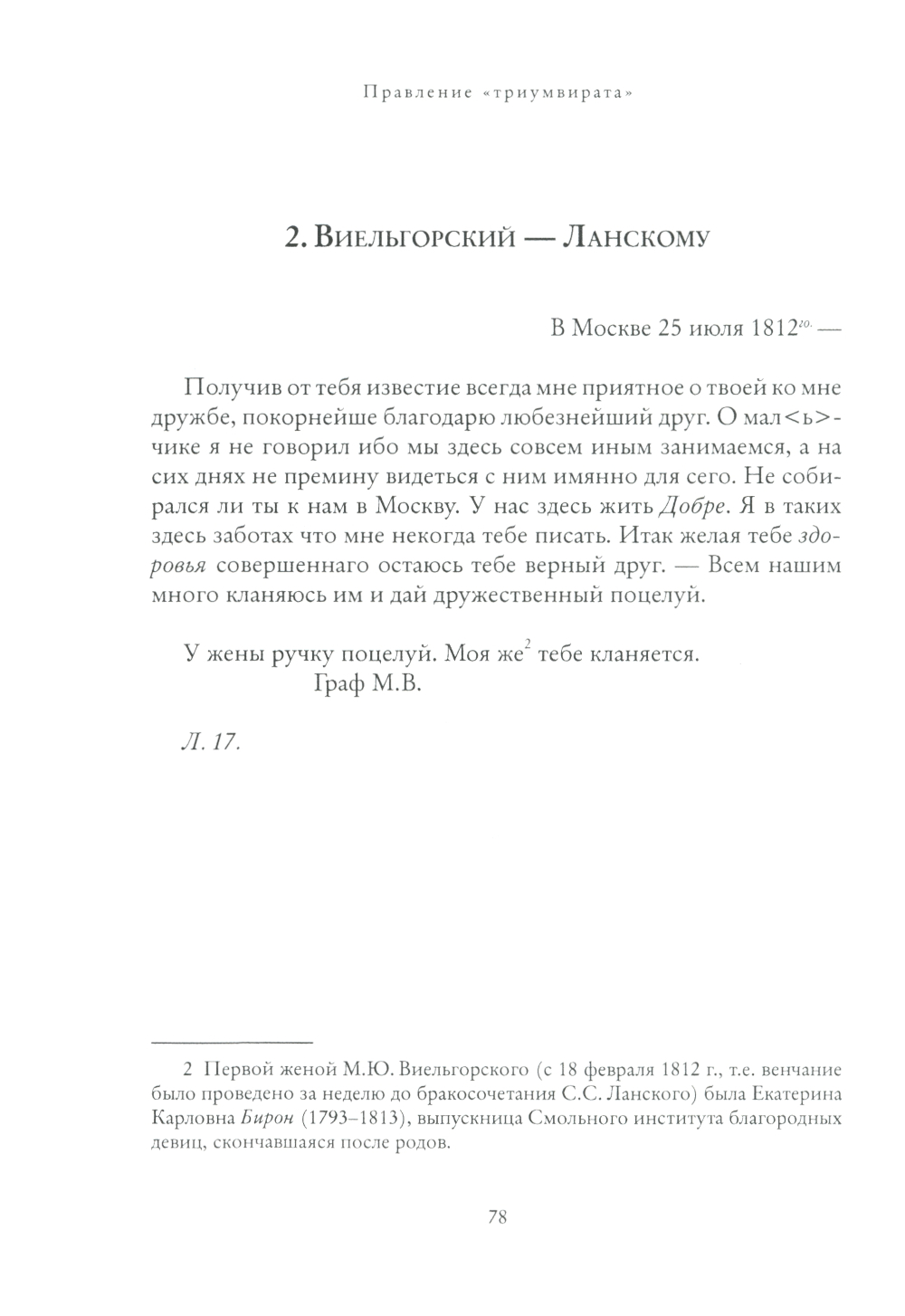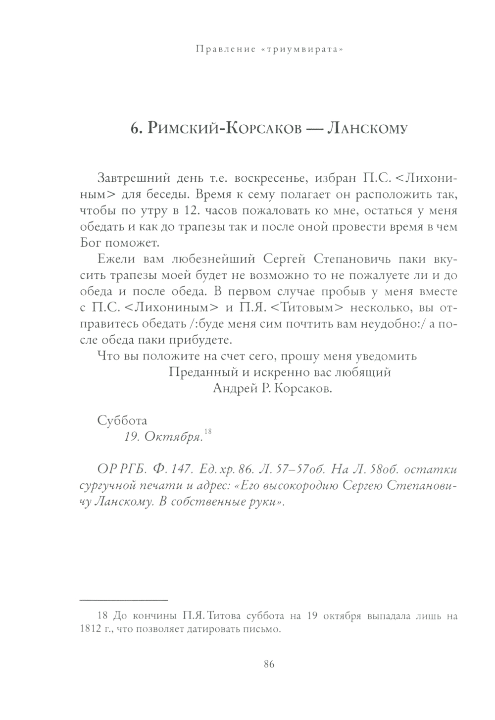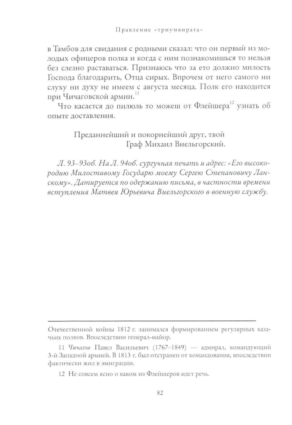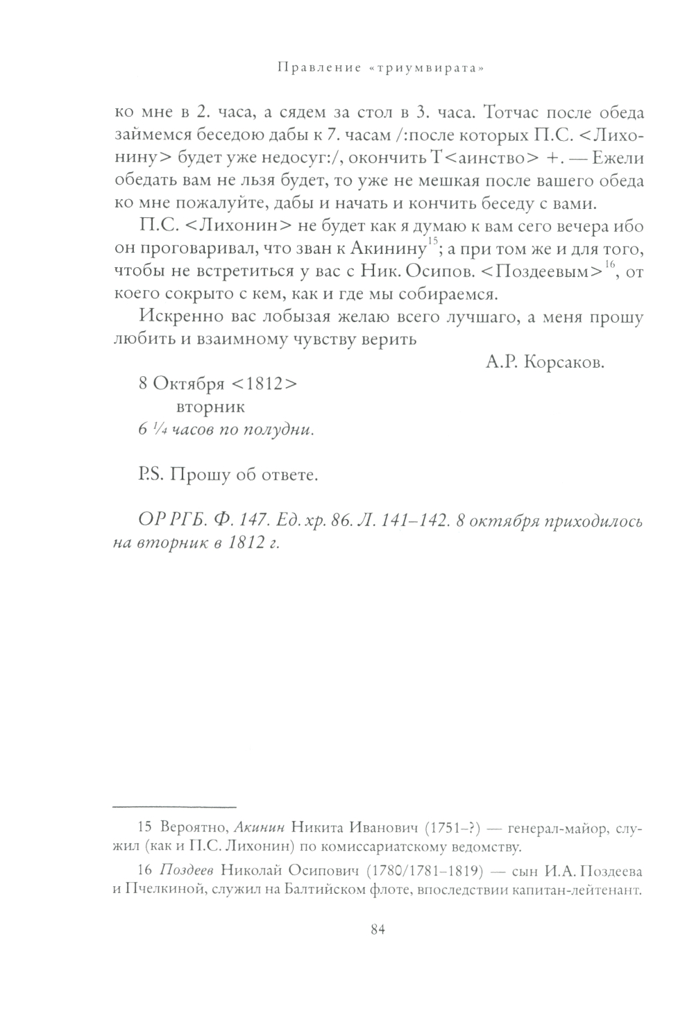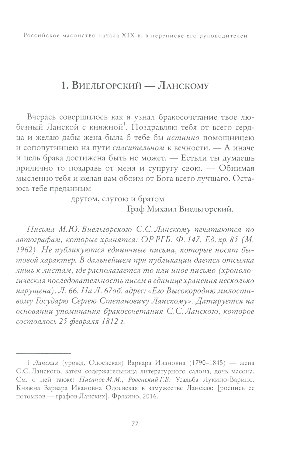 Перед читателем книга, которая преимущественно представляет собой публикацию переписки трех молодых масонов, учеников И.А. Поздеева, которые очень быстро прошли ступени масонской иерархии и фактически возглавляли в 1815-1822 гг. один из двух больших масонских союзов в России, Великую Провинциальную ложу. В период расцвета масонства, М.Ю. Виельгорский (аристократ, музыкант и душеприказчик А.С. Пушкина), С.С. Ланской (будущий министр внутренних дел) и А.П. Римский-Корсаков (отец композитора и будущий Новгородский и Волынский губернатор) почти полностью контролировали ситуацию в российском Ордене вольных каменщиков и определяли пути его развития. Публикуемая переписка является важнейшим источником для истории масонства в России XIX в.