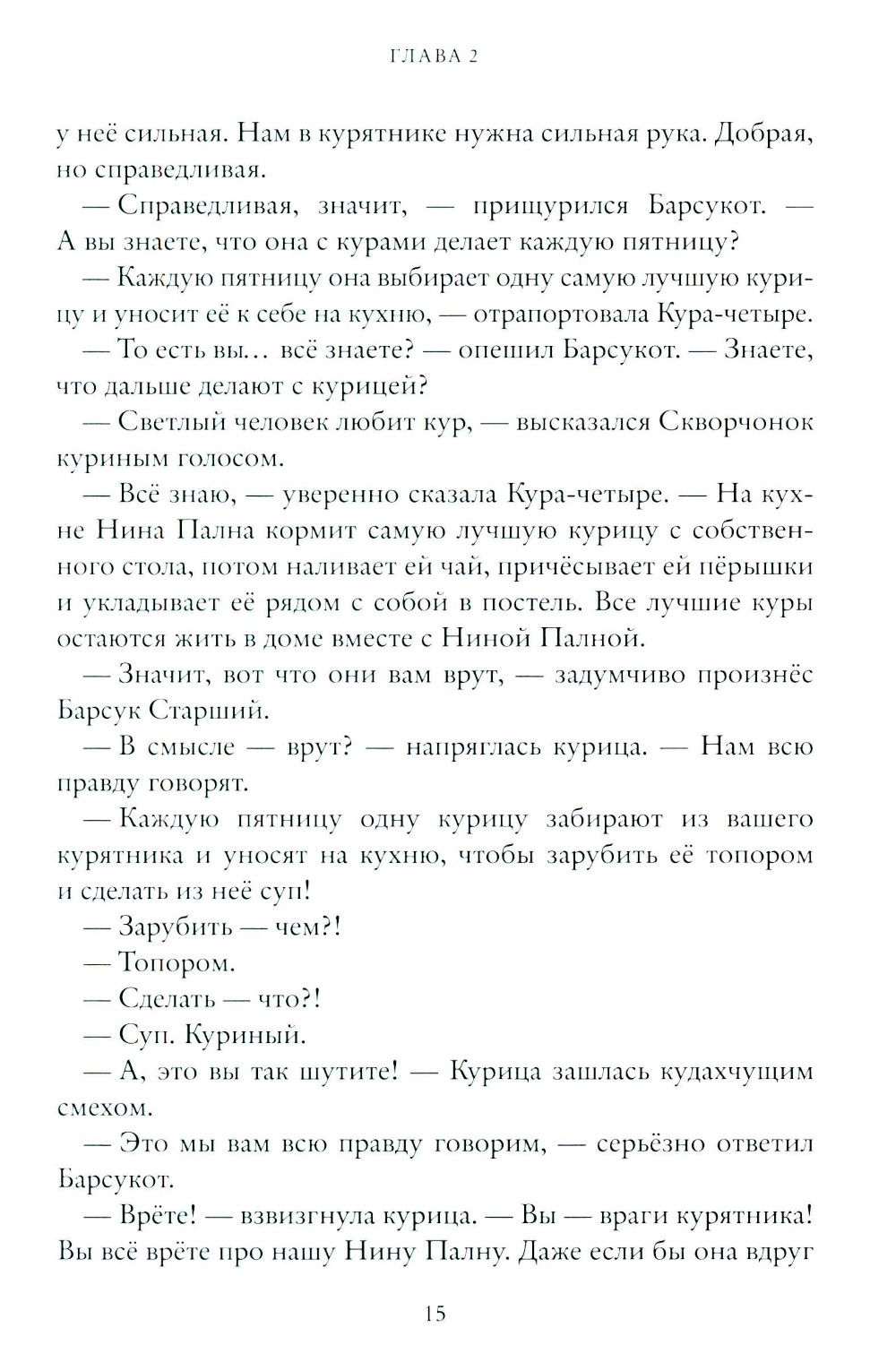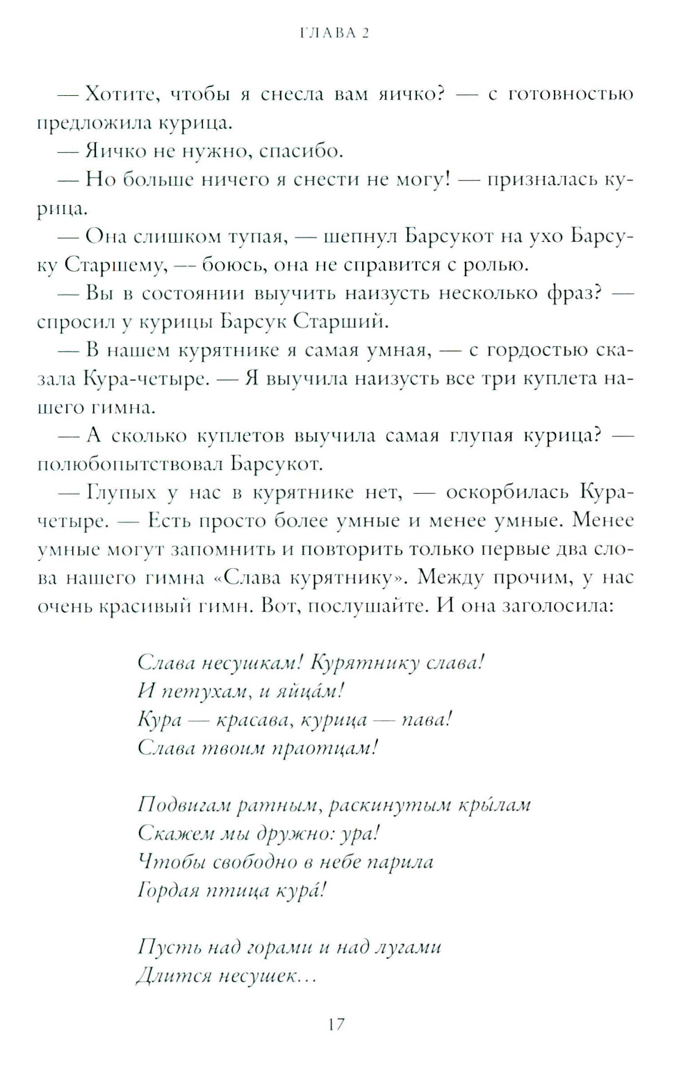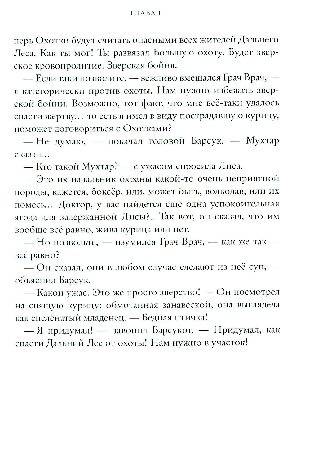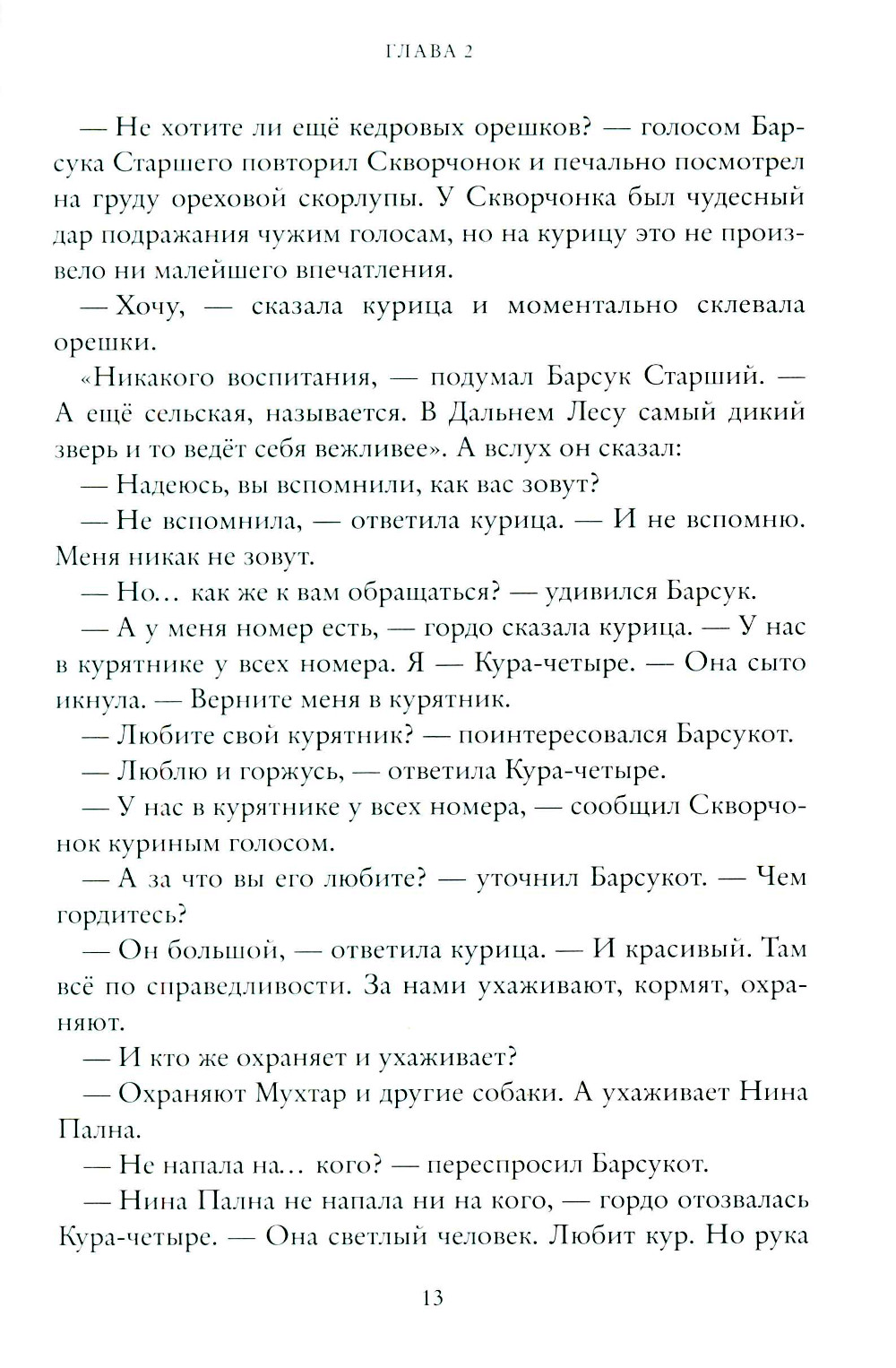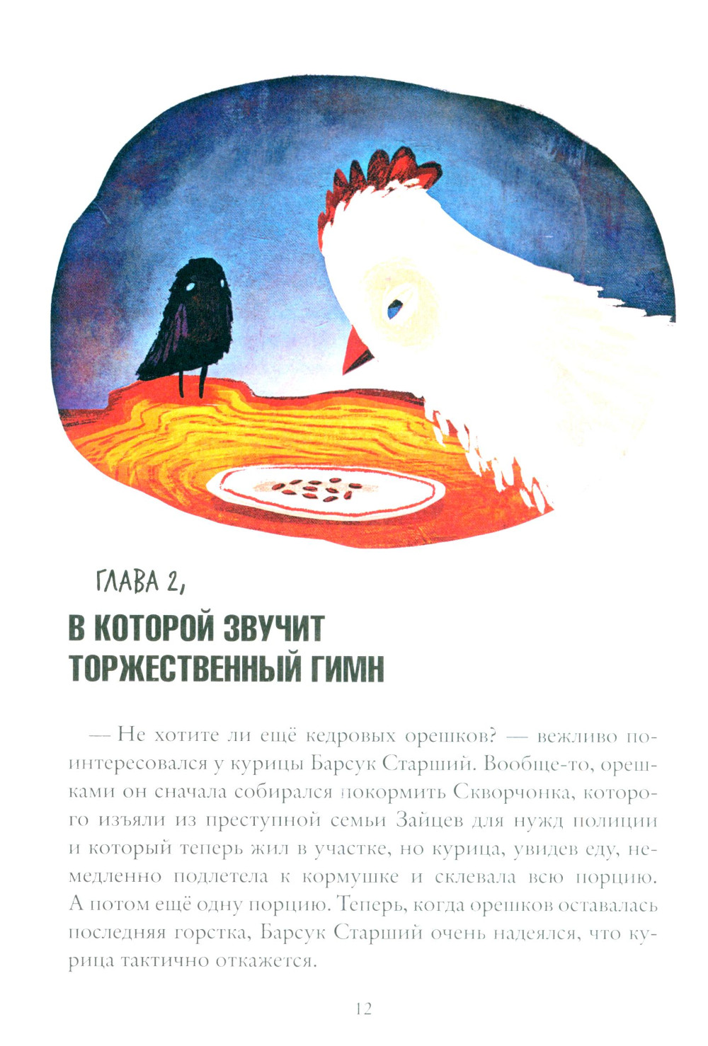 Над обитателями Дальнего Леса нависла страшная угроза. Совершено покушение на жизнь курицы, и виновник - здесь, среди лесных зверей! Начальник полиции Барсук Cтарший и его помощник Барсукот должны в короткое время найти убийцу и выдать его охотничьим псам, иначе весь Дальний Лес ожидает расправа! Смогут ли наши герои раскрыть преступление? Под чьей мягкой шубкой прячется настоящий зверь? Или теперь, когда законы нарушены, всё решает право хищника? «...Мутный, расплывчатый силуэт зверя во мгле... Он осторожно крадётся к курятнику, опустив голову и прижимаясь к земле... Повадки хищника. Повадки профессионального киллера. Вот он задирает свою хищную морду к полной луне... О, как знаком Барсуку полиции этот мечтательный взгляд на луну перед молниеносным броском - короткий магический ритуал, исполняемый ночью зверем-убийцей». «Право хищника» - вторая часть цикла «Зверский детектив» Анны Старобинец, в который входят также «Логово волка», «Когти гнева», «Щипач», «Боги манго» и «Хвостоеды».
