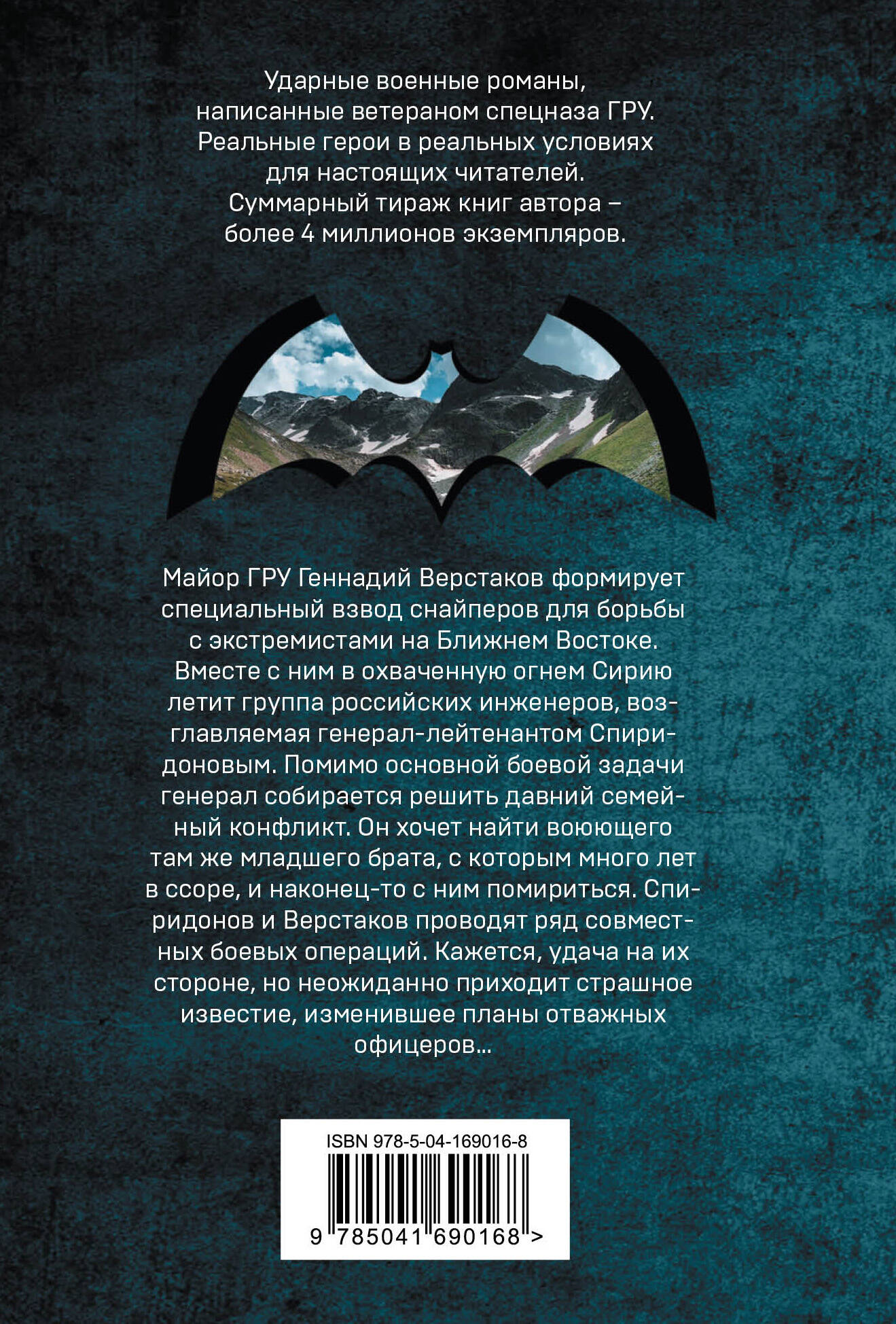 Ударные военные романы, написанные ветераном спецназа ГРУ. Майор ГРУ Геннадий Верстаков формирует специальный взвод снайперов для борьбы с экстремистами на Ближнем Востоке. Вместе с ним в охваченную огнем Сирию летит группа российских инженеров, возглавляемая генерал-лейтенантом Спиридоновым. Помимо основной боевой задачи генерал собирается решить давний семейный конфликт. Он хочет найти воюющего там же младшего брата, с которым много лет в ссоре, и наконец-то с ним помириться. Спиридонов и Верстаков проводят ряд совместных боевых операций. Кажется, удача на их стороне, но неожиданно приходит страшное известие, изменившее планы отважных офицеров… Реальные герои в реальных условиях для настоящих читателей. Горные перевалы, засады и жестокие схватки с бандитами - такова пропитанная порохом атмосфера этих захватывающих боевиков. Суммарный тираж книг автора - более 4 миллионов экземпляров.| Издательство | Эксмо |