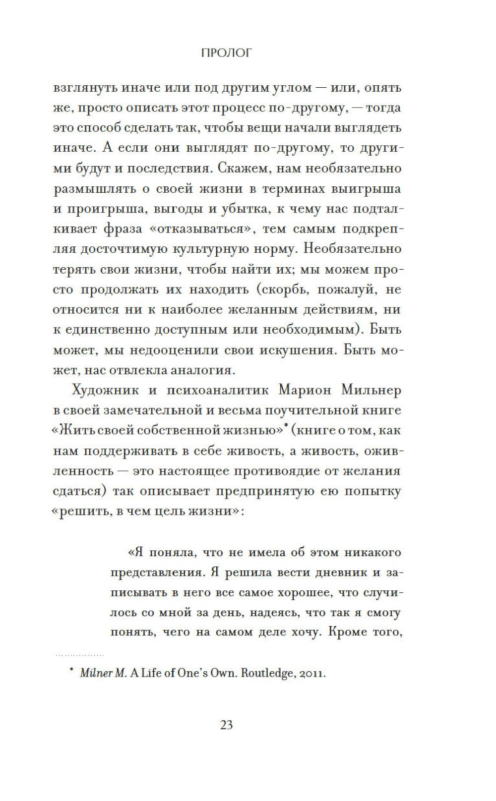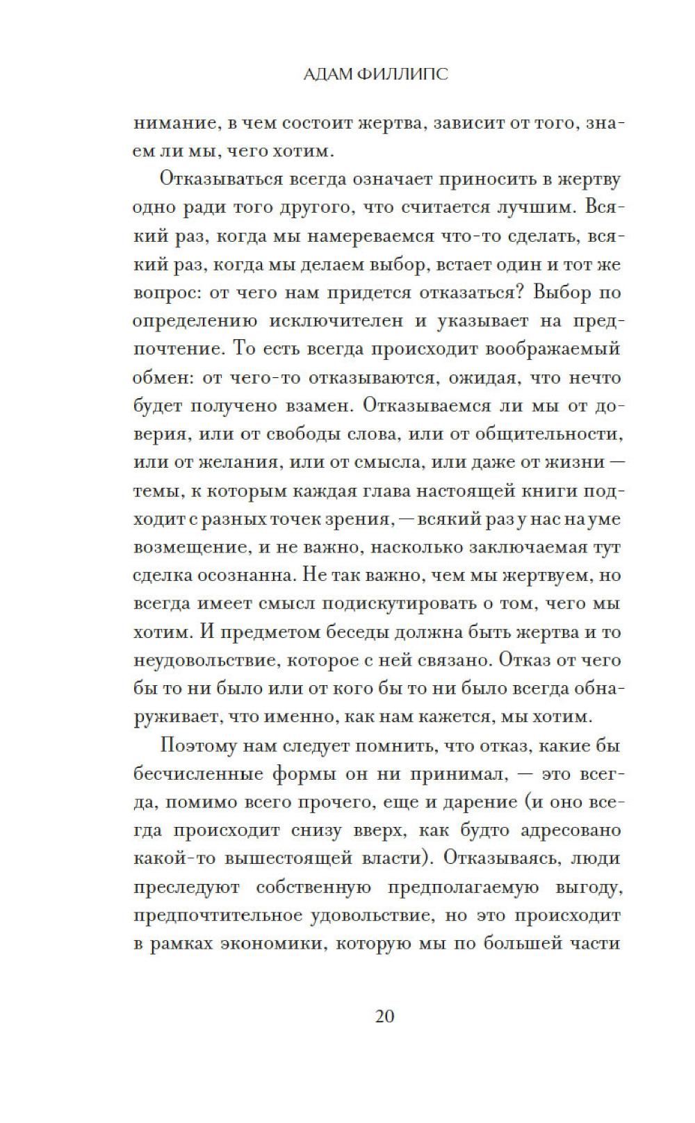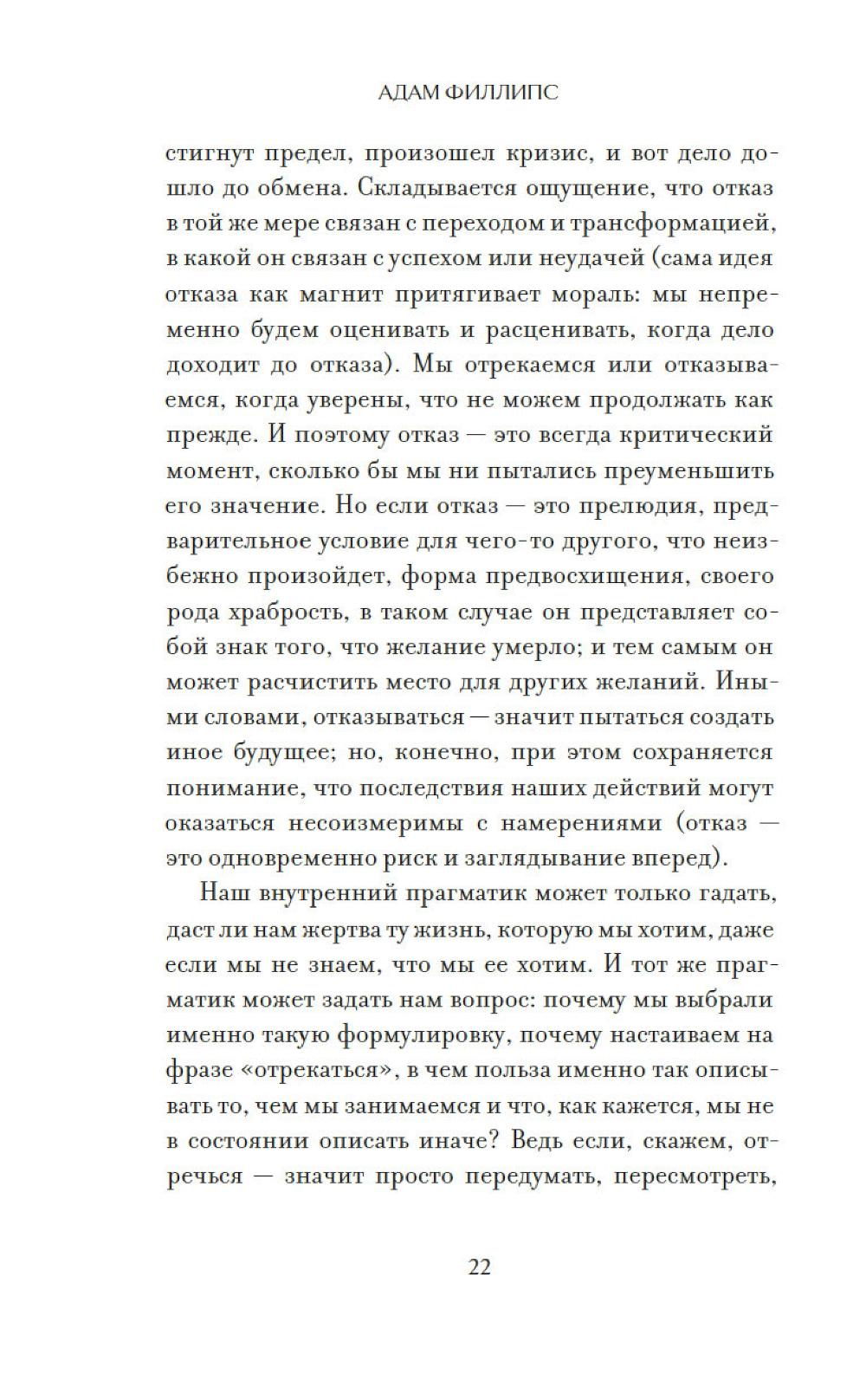 Сдаваться или не сдаваться - в чем на самом деле вопрос? Общество твердит нам: «Никогда не сдавайся!». Но что, если именно это упрямство заставляет нас бесконечно катить бесполезный камень на свою гору, подобно Сизифу? В чем разница между здоровой настойчивостью и разрушительным самообманом? Как отказ от иллюзий, токсичных отношений или невротических привязанностей может стать актом освобождения, а не поражения? Адам Филлипс, один из самых оригинальных психоаналитиков современности, предлагает радикальный взгляд на природу отказа. Опираясь на Фрейда и Юнга и обращаясь к образам Кафки, Шекспира и Манна, он ведет читателя к провокационному выводу: наша личность складывается из череды отказов, капитуляций и жертв. Право вовремя сдаться - это не слабость, а необходимое условие для взросления и обретения свободы.| Издательство | КоЛибри |