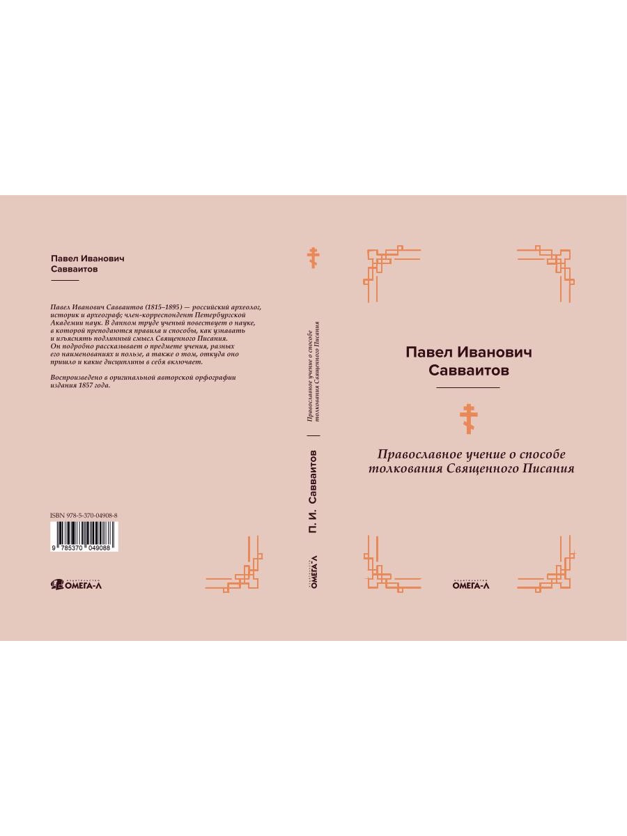 Павел Иванович Савваитов (1815-1895) - российский археолог, историк и археограф; член-корреспондент Петербургской Академии наук. В данном труде ученый повествует о науке, в которой преподаются правила и способы, как узнавать и изъяснять подлинный смысл Священного Писания. Он подробно рассказывает о предмете учения, разных его наименованиях и пользе, а также о том, откуда оно пришло и какие дисциплины в себя включает. Воспроизведено в оригинальной авторской орфографии издания 1857 года (СПб. : Типография Якова Трея, 1857. - 162 с.).| Издательство | Омега-Л |