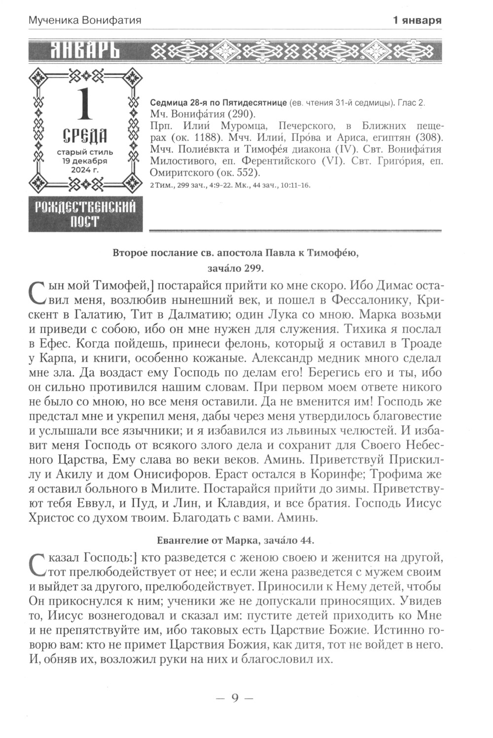 Православный календарь на 2025 год: Ветхозаветные, Евангельские и Апостольские чтения на каждый день года. Тропари, кондаки и перемии