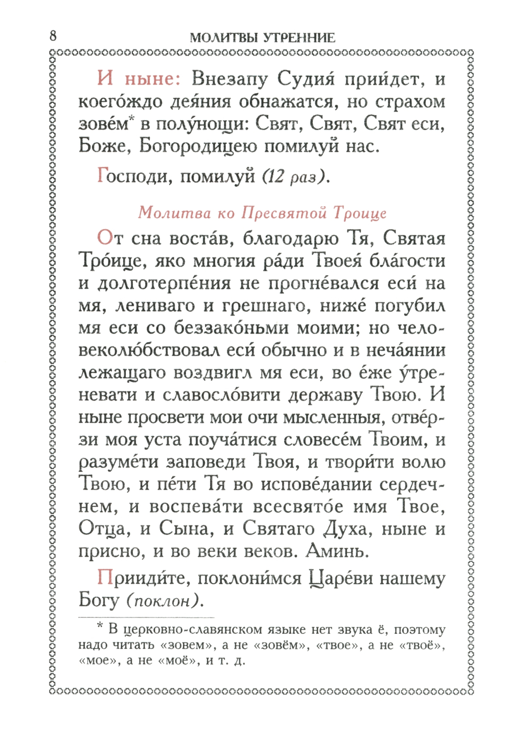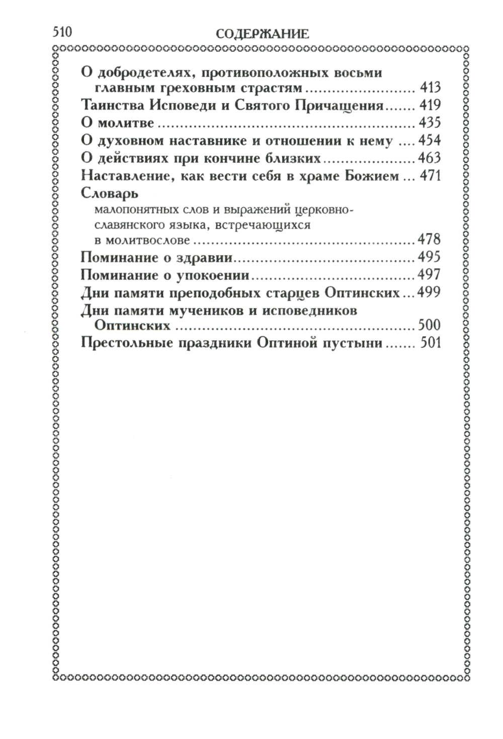 Составители обращают внимание благочестивых читателей на особенности настоящего издания: молитвословия по смыслу объединены в тематические разделы, включен ряд молитв подвижников веры и благочестия православной России и в особенности - преподобных старцев Оптиной пустыни. Текст Пасхального канона приведен в более полном варианте, согласно Триоди Цветной и Каноннику. По авторитетным источникам уточнено авторство некоторых молитв; согласно письмам преподобного Амвросия печатаются псалмы, составляющие предлагаемое им правило. Сообщаются необходимые сведения о молитве и таинствах Церкви как о путях богообщения; о духовном отце - руководителе и наставнике ко спасению; о канонически правильных действиях при кончине близких; также материалы, помогающие более основательно подготовиться к таинствам Покаяния и Причащения. В конце предлагается небольшой словарь церковно-славянских слов и выражений данного издания, вызывающих трудности в понимании.| Издательство | Введенский муж. монастырь Оптина Пустынь |