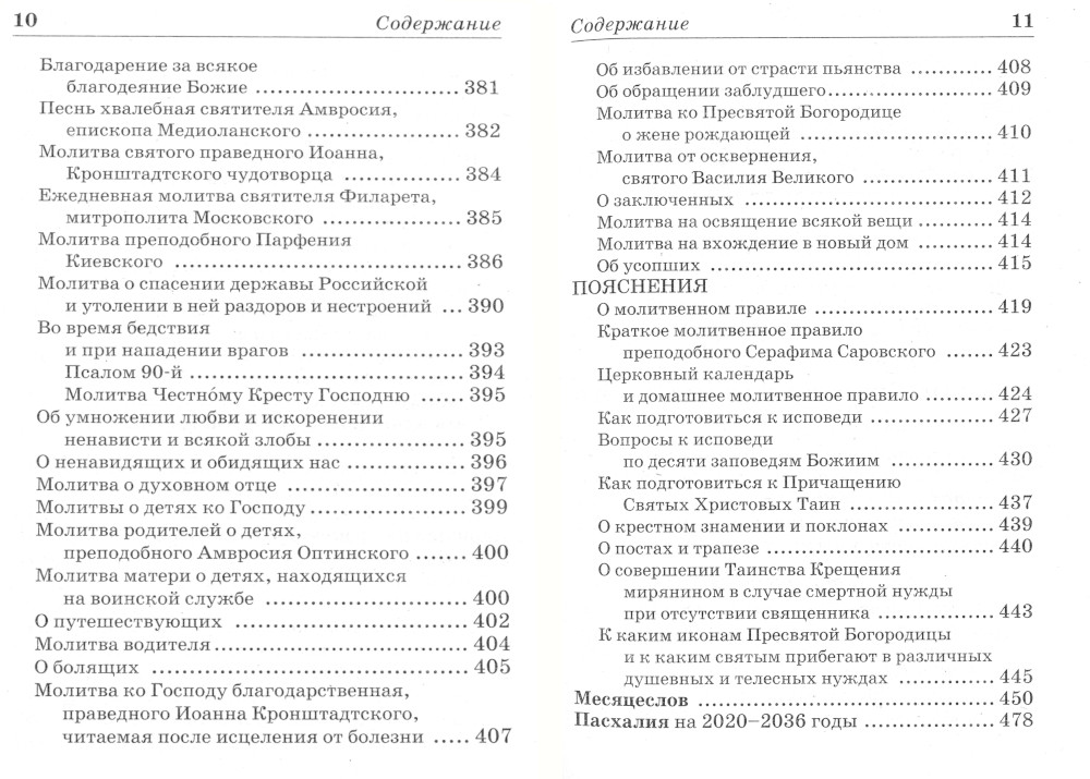 Издание содержит молитвы утренние с дополнениями, молитвы на сон грядущим, акафисты, каноны; тропари, кондаки и величания православным праздникам, иконам Пресвятой Богородице, святым; последование ко Святому Причащению и благодарственные молитвы, молитвословия из Триодей и на всякую потребу души, а также пояснения к молитвослову, месяцеслов и Пасхалию на 2020-2036 гг.| Издательство | Отчий дом |