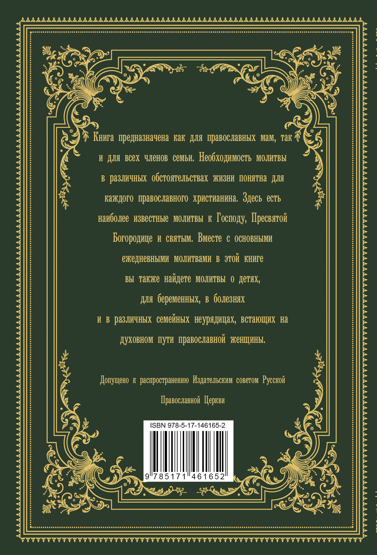 Книга предназначена как для православных мам, так и для всех членов семьи. Необходимость молитвы в различных обстоятельствах жизни - понятна для каждого православного христианина. Здесь есть наиболее известные молитвы к Господу, Пресвятой Богородице и святым. Вместе с основными ежедневными молитвами в этой книге вы также найдете молитвы о детях, для беременных, в болезнях и в различных семейных неурядицах, встающих на духовном пути православной женщины.| Издательство | ИЗДАТЕЛЬСТВО "АСТ" |