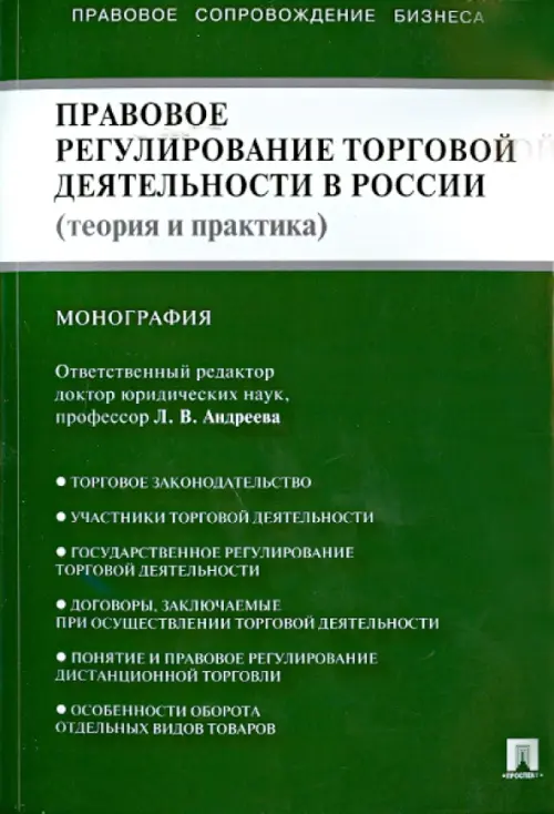 Аннотация: Правовое регулирование торговой деятельности в России. Теория и практика. Монография