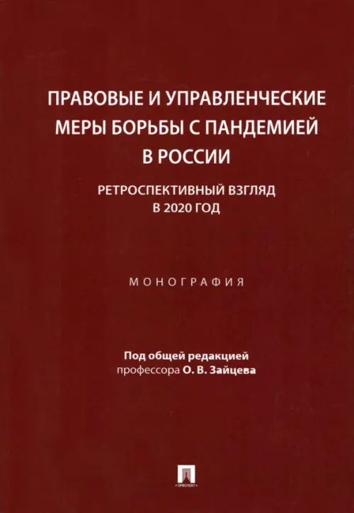 Основная идея монографии - дать возможность читателям ретроспективным взглядом оценить эффективность правовых и управленческих мер, принятых в период борьбы с коронавирусной инфекцией в 2020 году. Монография представляет собой коллективный научный труд, в котором представлен анализ изменений российского законодательства во вторую волну пандемии, приведены аргументы достаточности и своевременности принятых правовых мер в тот период. Проанализировано действие международных конвенций в условиях пандемии, показаны состояние и динамика коррупции в условиях особых ограничительных режимов. Более тщательному правовому анализу подвергнуты принятые государством управленческие и правовые меры, направленные на обеспечение и защиту конституционного права на охрану здоровья и медицинскую помощь в условиях пандемии в 2020 году. Книга подготовлена непосредственно в период первоначального введения новых правовых и управленческих мер поддержки граждан и ограничений их прав в ситуации масштабного распространения коронавирусной инфекции в 2020 году. Таким образом, ценность данного исследования заключается в возможности оценить эффективность мер борьбы с пандемией, учитывая опыт современной ситуации и практику их применения.