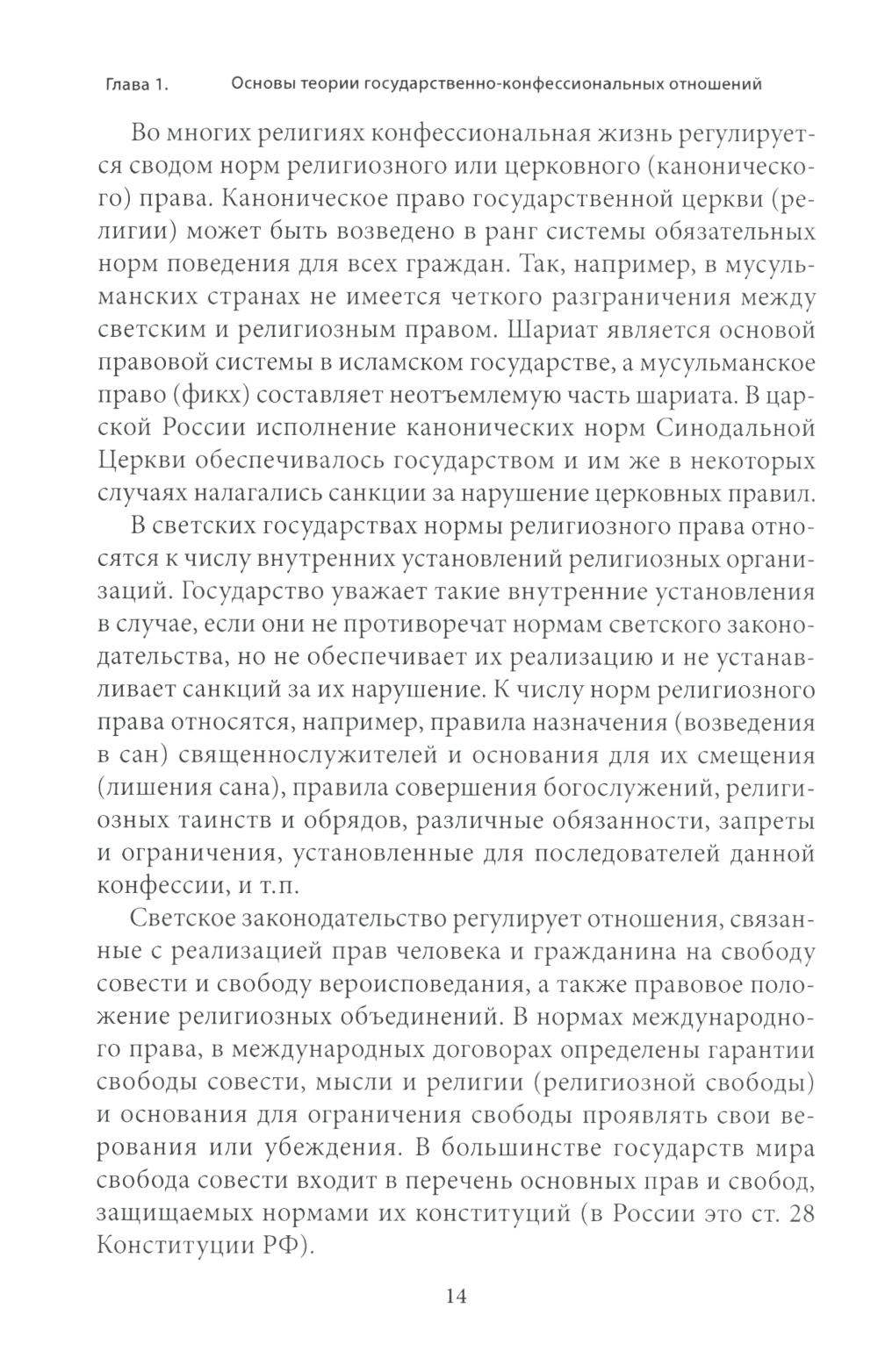 Книга Михаила Шахова «Правовые основы деятельности религиозных объединений в Российской Федерации» представляет собой третье, дополненное и переработанное издание фундаментального труда по современному российскому законодательству о свободе совести, свободе вероисповедания и о религиозных объединениях. В работе представлен систематизированный обзор и анализ правовых гарантий религиозной свободы, правил, регулирующих создание религиозных объединений, их права и обязанности, конкретные виды их деятельности. Большое внимание уделено правоприменительной практике, в частности судебным решениям. Освещены также вопросы теории государственно-конфессиональных отношений, имеющиеся проблемы и перспективы их развития. Книга адресована слушателям духовных учебных заведений и курсов повышения квалификации, священнослужителям и сотрудникам религиозных организаций, специалистам в области государственно-конфессиональных отношений, конституционного права, теологам и религиоведам, студентам, аспирантам и всем интересующимся проблемами свободы вероисповедания и деятельности религиозных объединений.| Издательство | Изд. Сретенского монастыря |