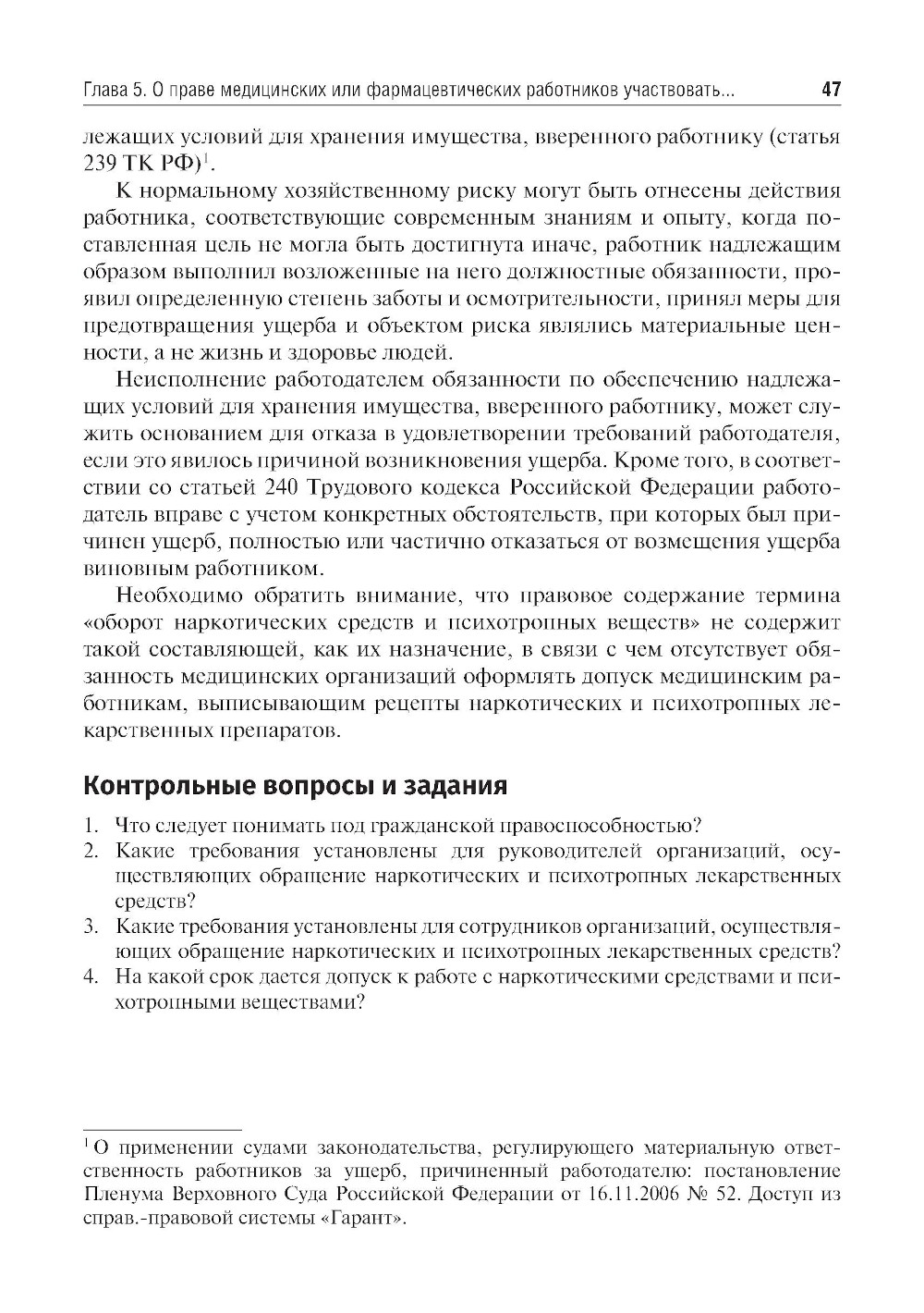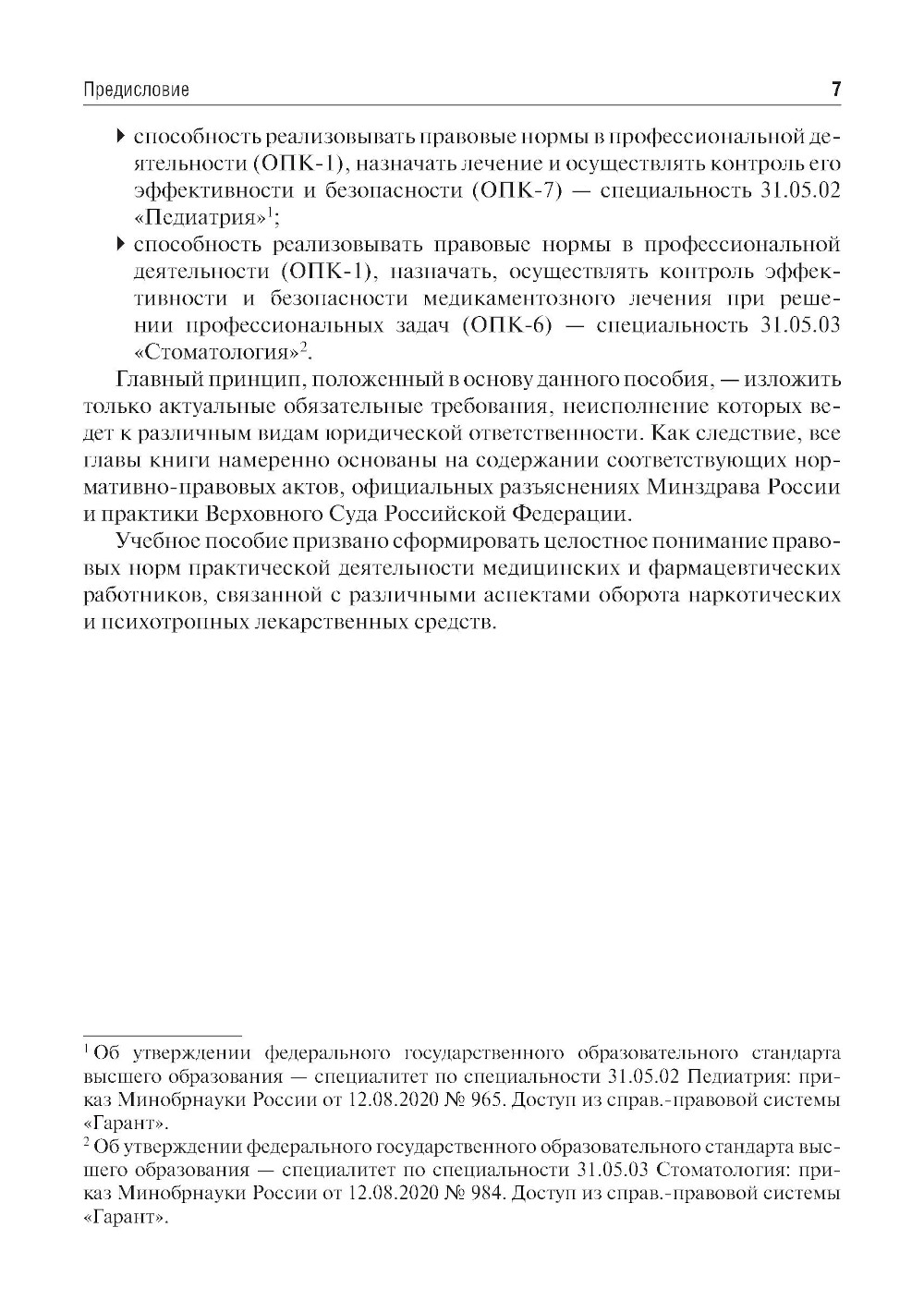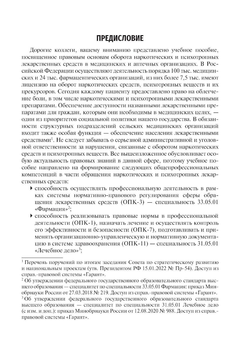 В учебном пособии представлены современные правовые аспекты обращения наркотических и психотропных лекарственных средств с учетом специфики деятельности медицинских и аптечных организаций. Актуальность пособия обусловлена произошедшими в 2020-2024 гг. изменениями законодательства. В нем собраны, систематизированы и изложены по принципу от простого к сложному правовые аспекты различных элементов обращения наркотических и психотропных лекарственных средств в медицинских и аптечных организациях. Книга призвана сформировать целостное понимание правовых составляющих практической деятельности как медицинских, так и фармацевтических работников, участвующих в обращении наркотических и психотропных лекарственных средств. Основной принцип пособия - изложить только актуальные обязательные требования с учетом их толкования Конституционным Судом РФ и Верховным Судом РФ, а также официальных разъяснений федеральных органов власти. Учебное пособие предназначено студентам медицинских вузов и факультетов, слушателям магистратуры по направлению подготовки 32.04.01 «Общественное здравоохранение», а также слушателям программ последипломного образования по специальности 14.02.03 «Общественное здоровье и здравоохранение». Издание может быть полезно слушателям юридических факультетов, интересующимся законодательством в сфере здравоохранения.