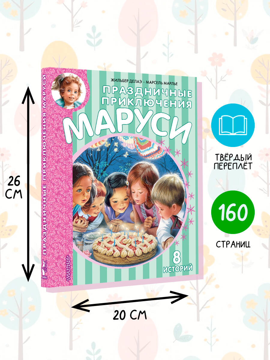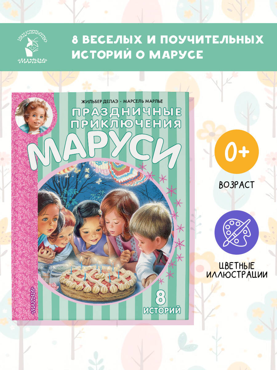 С Марусей праздник круглый год! Эта знаменитая девочка и её лучший друг Таксик будут отмечать все праздники: самый волшебный праздник в мире - Новый год, самый лучший праздник - день рождения, повеселятся на карнавале и маскараде, встретят весну и пойдут в первый класс. В книге 8 историй, которые можно читать на праздниках, а можно читать весь год, ведь для отличной книги с великолепными иллюстрациями всегда есть время! Серия "Приключения Маруси" - это уникальный издательский проект, который стал бестселлером сначала во Франции, а потом и более чем в 50 странах мира! Общий тираж книг более 100 миллионов экземпляров. Про весёлую Марусю снимают мультфильмы, которые с успехом идут в России и за рубежом. На русский язык книгу пересказала Н. Мавлевич. Для младшего школьного возраста.| Издательство | ИЗДАТЕЛЬСТВО "АСТ" |