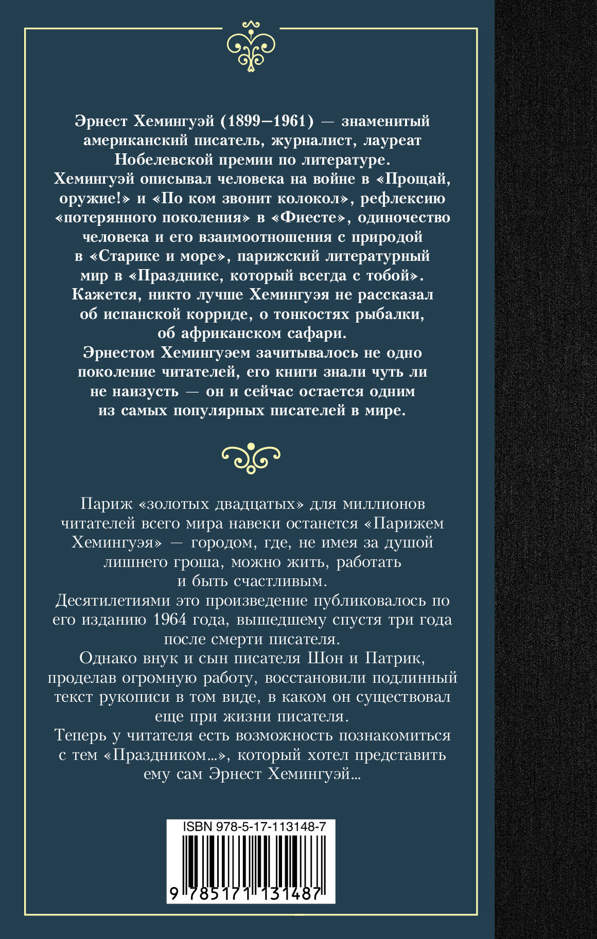 Париж "золотых двадцатых" для миллионов читателей всего мира навеки останется "Парижем Хемингуэя" - городом, где не имея за душой лишнего гроша можно жить, работать и быть счастливым. Десятилетиями это произведение публиковалось по его изданию 1964 года, вышедшему спустя три года после смерти писателя. Однако внук и сын писателя Шон и Патрик, проделав огромную работу, восстановили подлинный текст рукописи в том виде, в каком он существовал еще при жизни писателя. Теперь у читателя есть возможность познакомиться с тем "Праздником…", который хотел представить ему сам Эрнест Хемингуэй…| Издательство | Издательство "АСТ" |