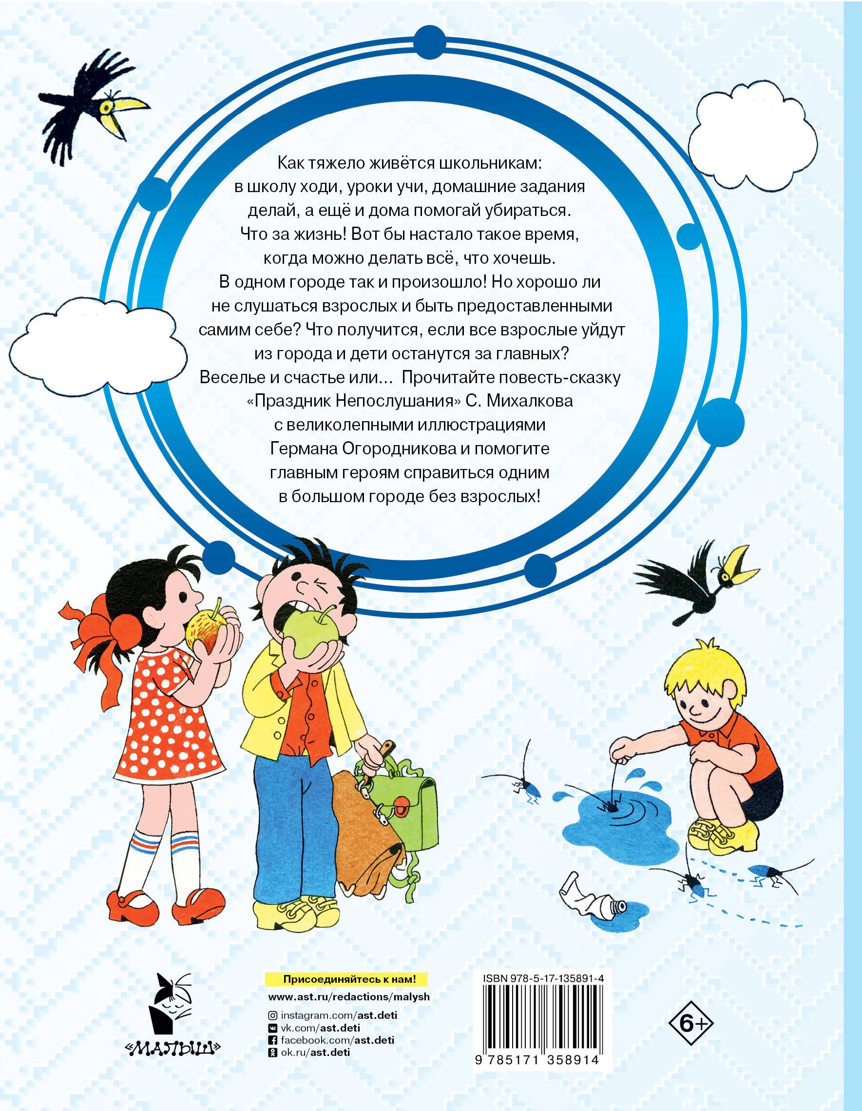 Знаменитая повесть-сказка С. Михалкова "Праздник Непослушания" - это мечта многих непослушных и ленивых детей. В один прекрасный день все родители исчезли и город остался во власти детворы! Что творилось на этом Празднике Непослушания, во что превратился город и его маленькие жители, вы узнаете из этой книги . В издание также вошло стихотворение "Моя улица". Иллюстрации известного художника Германа Огородникова.| Издательство | ИЗДАТЕЛЬСТВО "АСТ" |