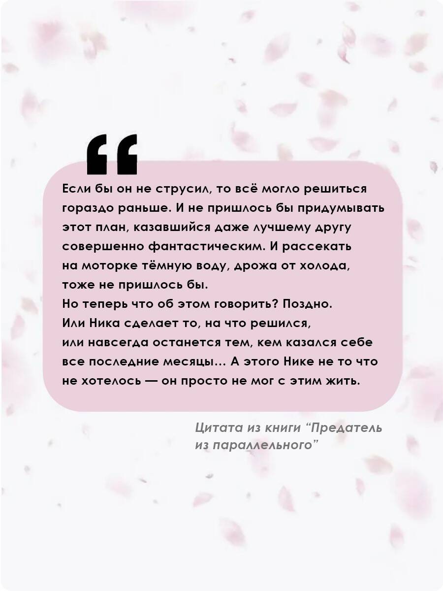 Ника и не подозревал, что когда-нибудь станет предателем. Да, девчонкам он нравился, и они ему тоже, но ведь он никому ничего не обещал. Его вообще больше привлекало море. И ещё самолёты. Он даже в кружок авиамоделизма записался. Но Света его всё-таки зацепила, а он… Он с лёгкостью предал её доверие, и теперь она, конечно, даже слышать о нём не хочет. Удастся ли Нике снова заслужить Светину любовь?| Издательство | Издательство "АСТ" |