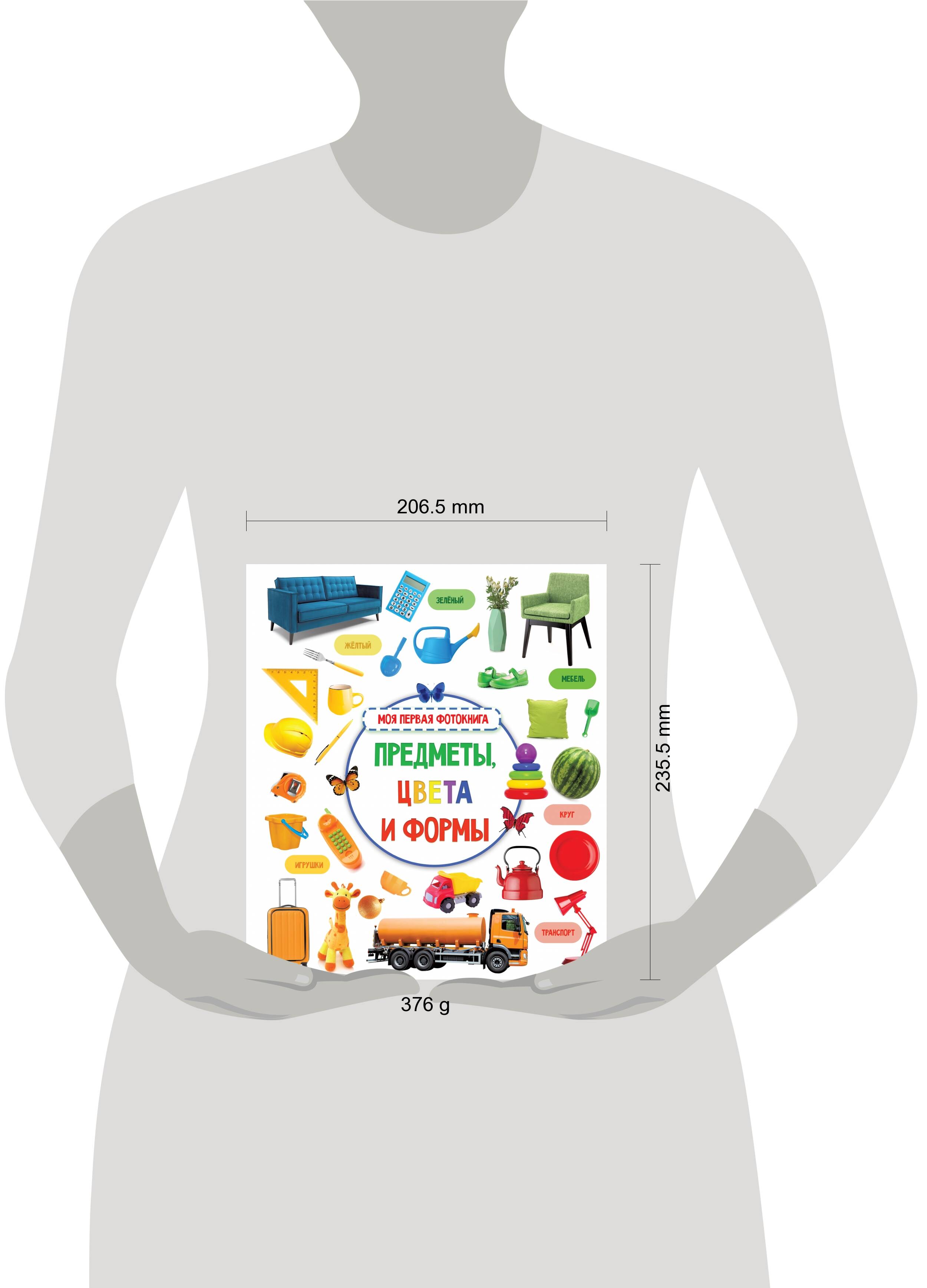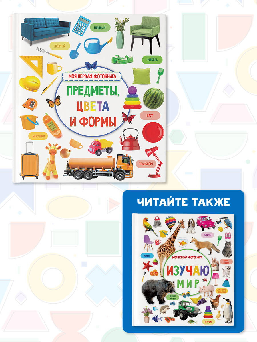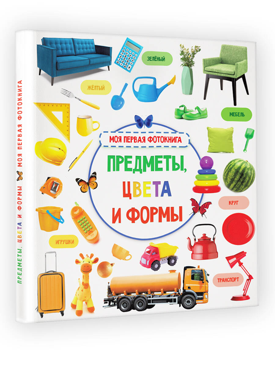 О чём эта книга «Предметы, цвета и формы» - это книжка с увлекательными заданиями для малышей. Рассматривая фотоизображения предметов домашнего обихода, игрушек и животных, дети будут изучать цвета и формы, знакомиться с окружающим миром.