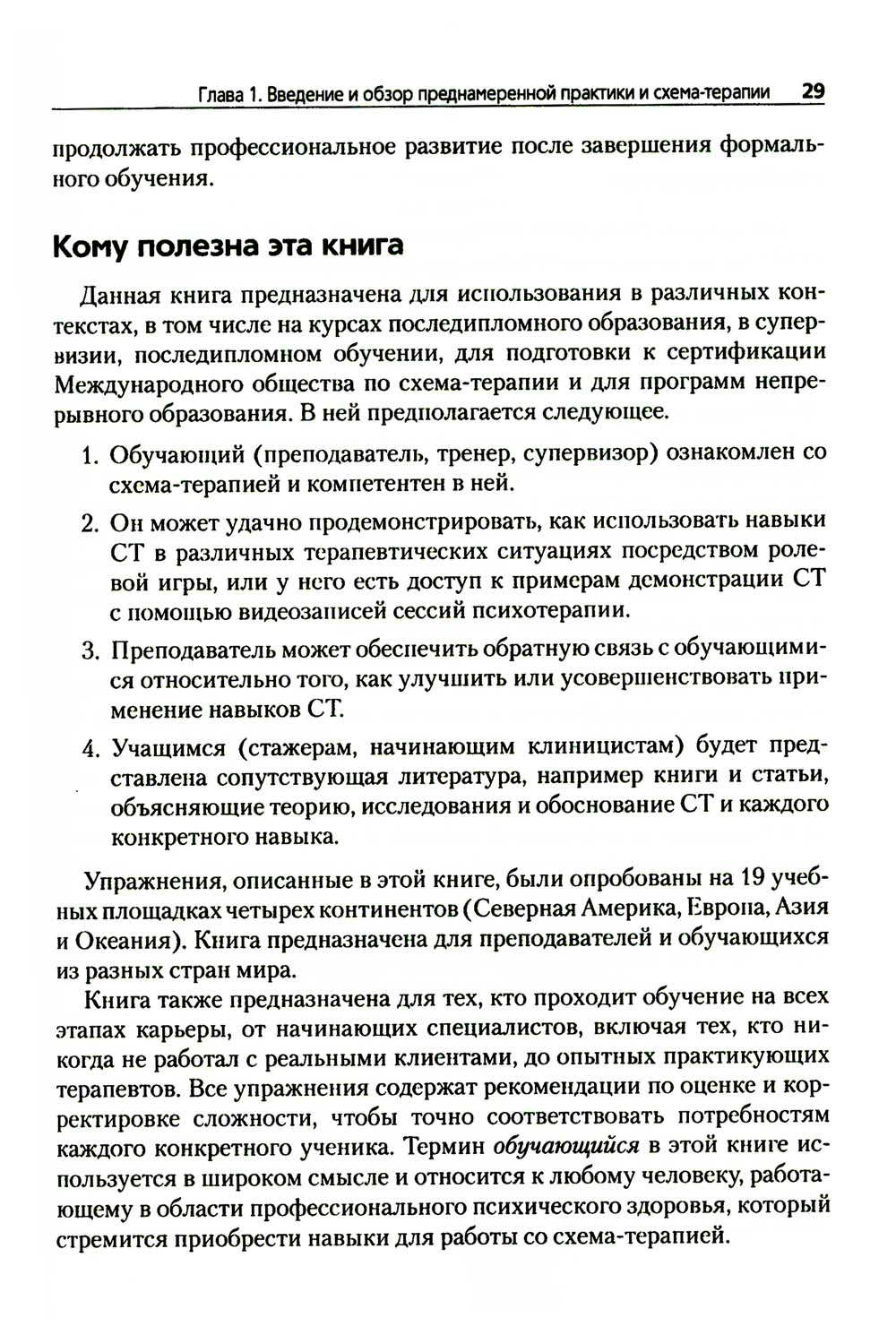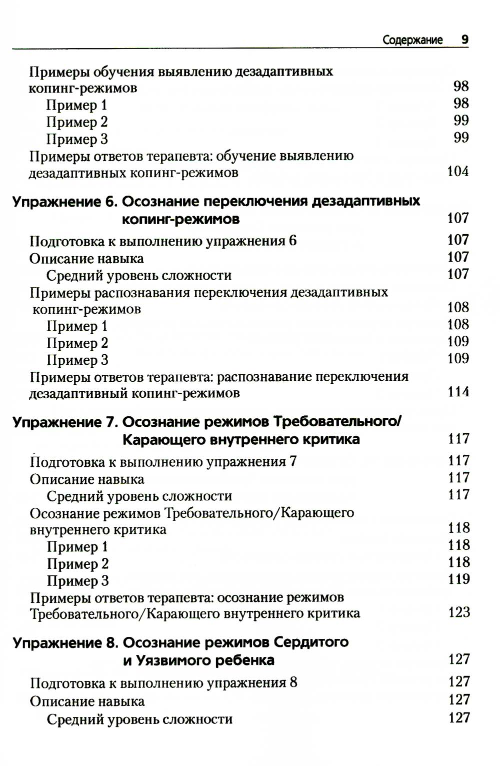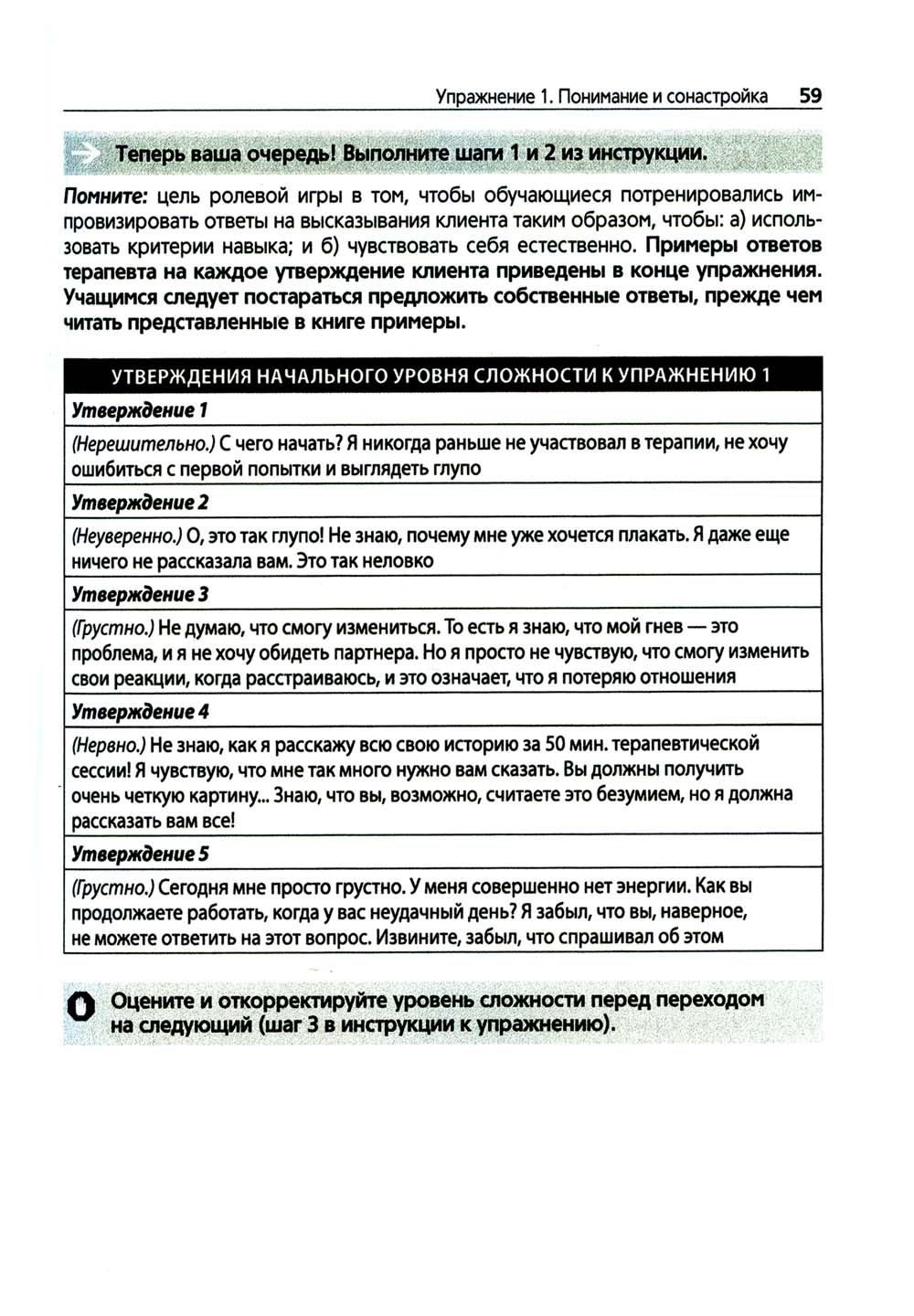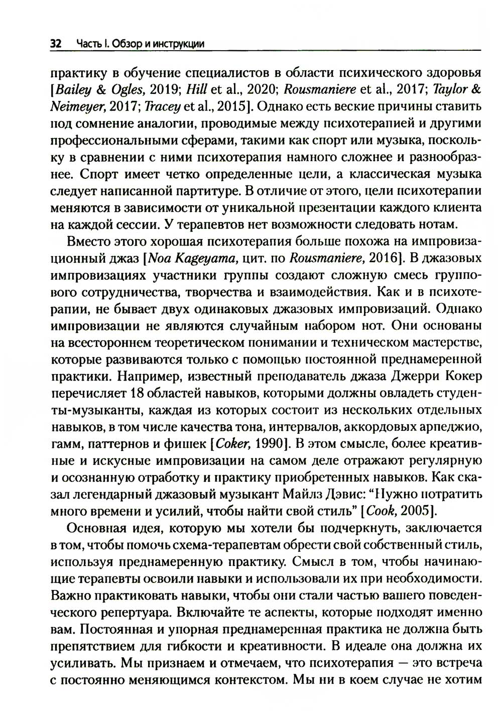 Эта книга содержит описание индивидуальных ролевых игр, в которых двое учащихся выступают в роли клиента и терапевта, сменяя друг друга под руководством супервизора. Практикующий в роли терапевта импровизирует соответствующие и аутентичные ответы на утверждения клиента, отнесенные к трем уровням сложности: начальному, среднему и продвинутому. Сам процесс отражает общие проблемы, с которыми сталкиваются схема-терапевты. Первые 12 упражнений посвящены навыкам, вытекающим из трех этапов схема-терапии (привязанности и эмоциональной регуляции, изменения режима и автономии), и включают в себя ограниченное родительство, психообразование схемному подходу и копинг-режимам и эмпатическую конфронтацию. После этого следуют два комплексных упражнения - аннотированный сценарий и имитация терапевтических сессий в свободной форме, - в которых практикующие интегрируют основные навыки в одну сессию. Пошаговые инструкции проводят обучающихся через упражнения, определяют критерии овладения каждым навыком и объясняют, как контролировать и корректировать терапевтический процесс. Также даны рекомендации, которые помогут инструкторам и ученикам получить максимальную отдачу от занятий. ОСНОВНЫЕ ТЕМЫ КНИГИ: - Теоретическая информация о схемном подходе и копинг-режимах; - Инструкции по преднамеренной практике; - Детальное описание упражнений; - Ролевые игры с режимами, диалоги режимов; - Аннотированный сценарий сессии схема-терапии; - Инсценировка сессии схема-терапии; - Приложения с формами и таблицами.