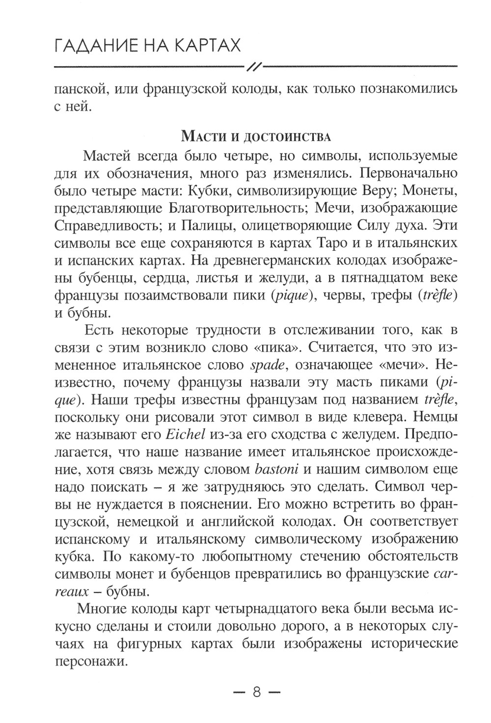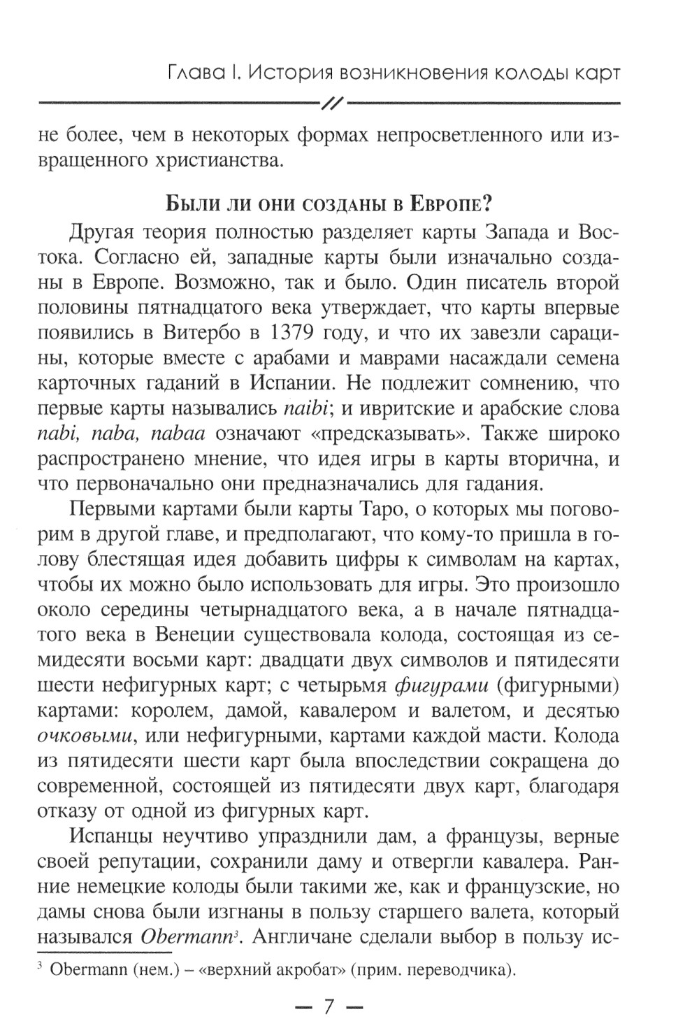 Игральные карты - это исток и Таро, и оракула Ленорман. История их происхождения до сих пор довольно туманна, родоначальники их точно не определены, значения варьируется. Однако же несмотря на обилие гадательных инструментов и методик, и сегодня, в XXI веке, многие продолжают отдавать предпочтение обычным игральным картам. Этот набор для предсказаний на игральных картах не так прост, как может показаться. 36 карт в его составе отрисованы нами в мистическом ключе, а книга-руководство - перевод работы проф. А. Фоли. Текст относится к XX веку и включает в себя: историю игральных карт; значения каждой карты по отдельности; значения комбинаций из двух и более карт; правила работы с «малой» колодой - в 32 и 21 карту; руководство по работе с обычной колодой в 36 карт; французские и итальянские гадания; множество раскладов.| Издательство | Издатель А.Г.Москвичев |