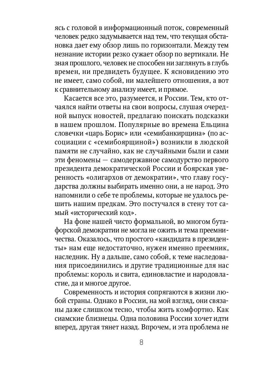 Книга писателя, публициста и политического обозревателя Петра Романова рассказывает о преемственности высшей государственной власти в России начиная с эпохи Ивана III до настоящего времени.| Издательство | Т8 RUGRAM |