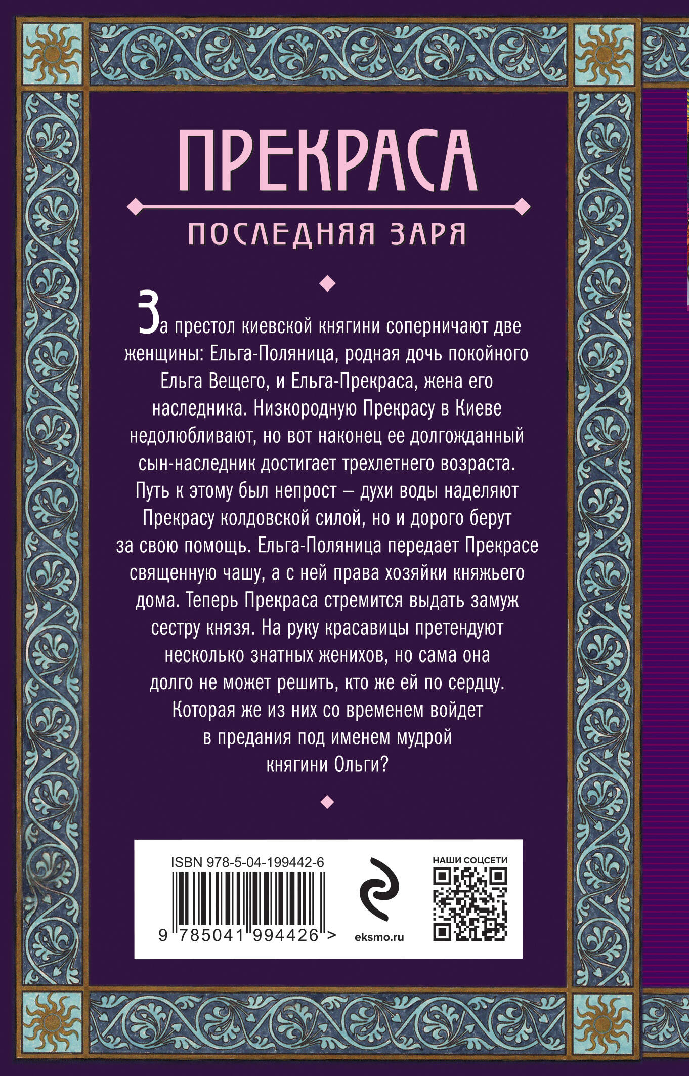 Каждая книга Елизаветы Дворецкой - это захватывающее приключение, мир Древней Руси, в который попадаешь прямо со страниц романа. Ее герои вызывают невольное уважение, их поступки заставляют переживать и радоваться, а их судьбы волнуют так, что невозможно оторваться, не дочитав до конца. За престол киевской княгини соперничают две женщины: Ельга-Поляница, родная дочь покойного Ельга Вещего, и Ельга-Прекраса, жена его наследника. Низкородную Прекрасу в Киеве недолюбливают, но вот наконец ее долгожданный сын-наследник достигает трехлетнего возраста. Путь к этому был непрост - духи воды наделяют Прекрасу колдовской силой, но и дорого берут за свою помощь. Ельга-Поляница передает Прекрасе священную чашу, а с ней права хозяйки княжьего дома. Теперь Прекраса стремится выдать замуж сестру князя. На руку знатной красавицы претендуют несколько знатных женихов, но сама она долго не может решить, кто же ей по сердцу. Которая же из них со временем войдет в предания под именем мудрой княгини Ольги?| Издательство | ООО "Издательство "Эксмо" |