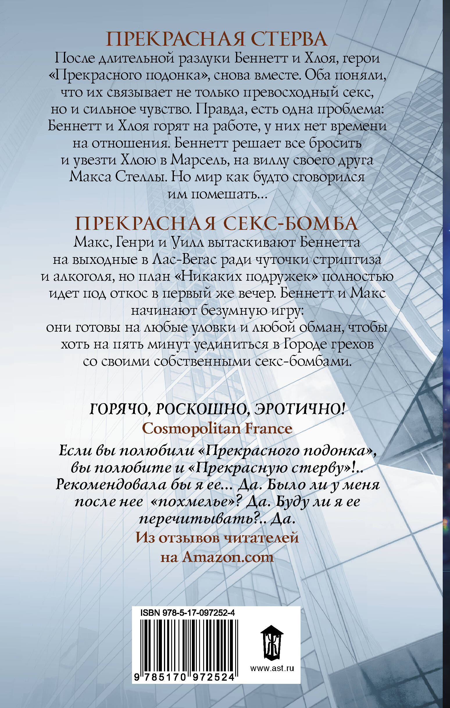 Кристина Хоббс и Лорен Биллингс пишут книги под псевдонимом Кристина Лорен с 2009 года. Лорен имеет степень доктора нейробиологии, Кристина в прошлом детский психолог. Их книги переведены более чем на 30 языков. Первые тексты фанфика по «Сумеркам» The Office были опубликованы в Сети и быстро завоевали популярность среди молодежи и фанатов саги. Уже в 2010 году девушки получили контракт на издание полноценной книги, а в 2013 компания Constantin Film купила права на экранизацию сюжетов по мотивам серии «Прекрасный подонок». Наравне с эротическими произведениями Кристина и Лорен пишут романы для подростков. Их книги возглавляют списки бестселлеров New York Times, а также являются выбором редакции Amazon. Быт заел? Серые офисные будни? Нет, это не про героев новой книги Кристины Лорен из нашумевшей серии «Прекрасный подонок». В «Прекрасной стерве» страсть Хлои и Беннетта сметает на своем пути все, в том числе бумаги с рабочего стола и домашнюю кухонную утварь. А чтобы добавить к необузданному желанию романтическую нотку, можно улететь на несколько дней в солнечную Францию и заняться любовью на фоне Средиземного моря. Но и этого мало непредсказуемой Хлое. В следующей части эротической эпопеи девушка затевает опасную игру и превращается в настоящую секс-бомбу! В экзотических декорациях ночных клубов Лас-Вегаса и их потайных комнатах можно все и не существует никаких запретов. Кого заденет взрыв страсти, подогретый тайнами и алкоголем? Смогут ли молодые любовники устоять против соблазнов Города грехов и сохранить любовь? В основе серии книг о Хлое и Беннетте лежит фанфик Кристины Лорен The Office по суперпопулярной саге «Сумерки», ставшей настоящим книжным и кинобестселлером в 2005-2012 годах. По мнению более двух миллионов читателей в Интернете и фанатов «Сумеречной саги», The Office - лучший эротический фанфик по «Сумеркам». Для серии «Прекрасный подонок» имена героев вампирской саги были изменены. Права на экранизацию выкупила компания Constantin Film, а продюсером фильма станет Джереми Болт («Обитель зла»).| Издательство | ИЗДАТЕЛЬСТВО "АСТ" |