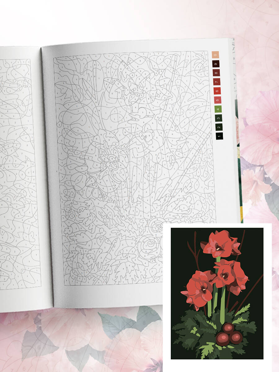 Прекрасные цветы. Раскраска по номерам